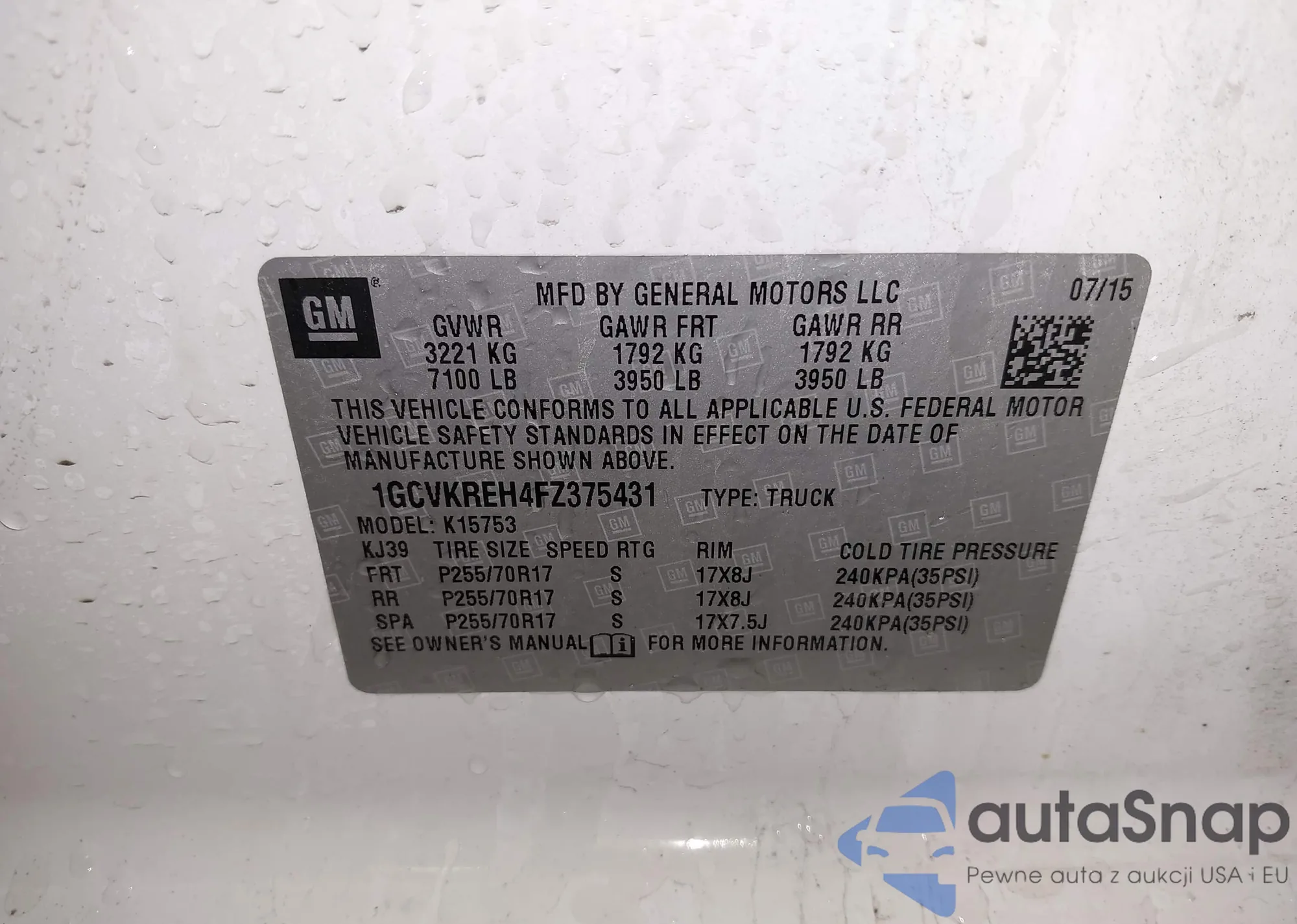 • VIN: 1GCVKREH4FZ375431
