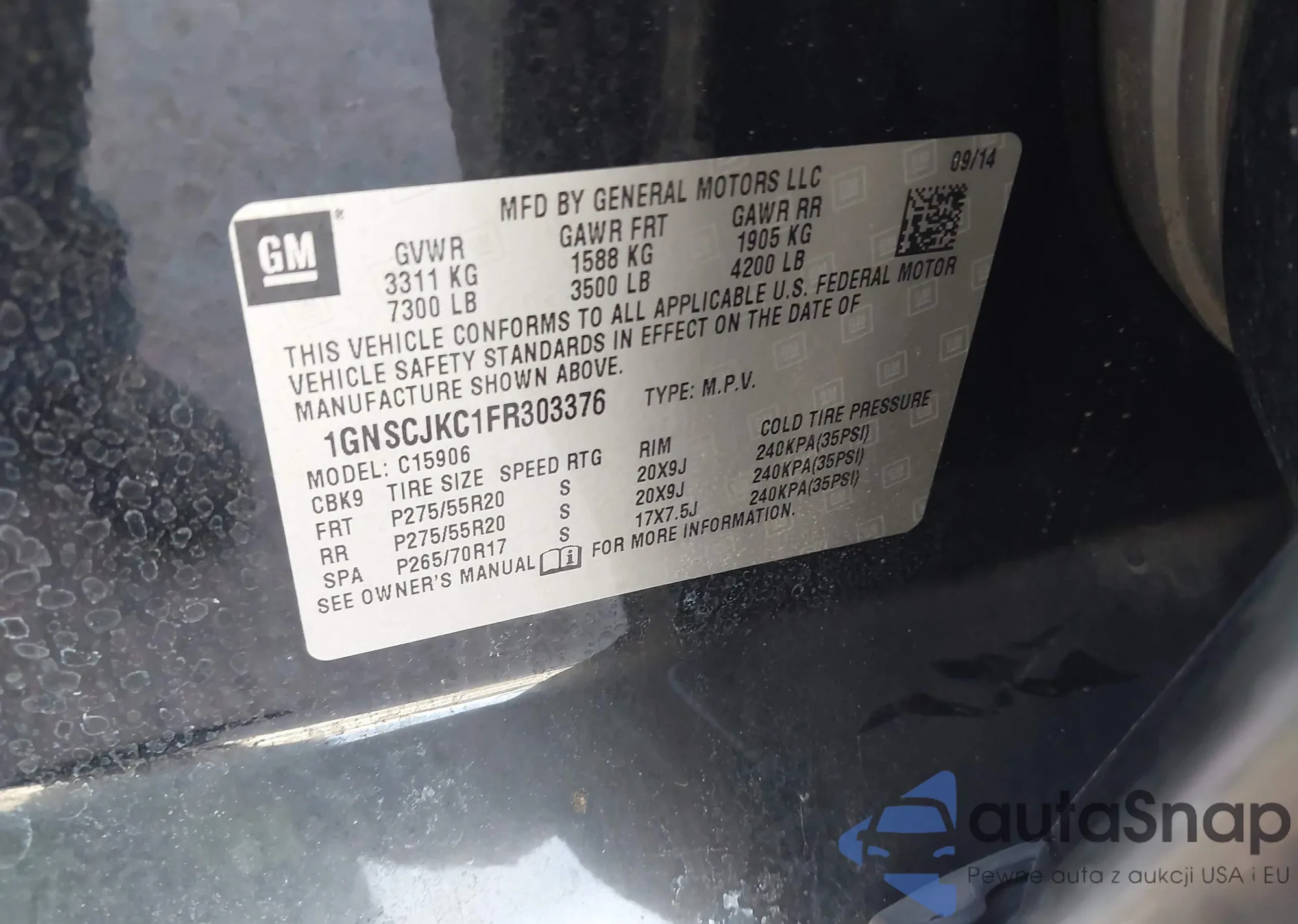 • VIN: 1GNSCJKC1FR303376