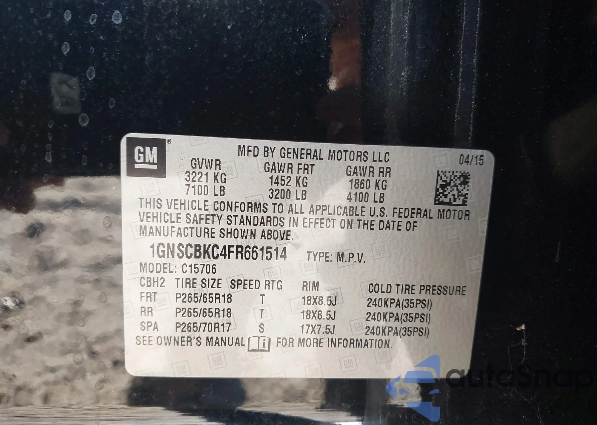 • VIN: 1GNSCBKC4FR661514