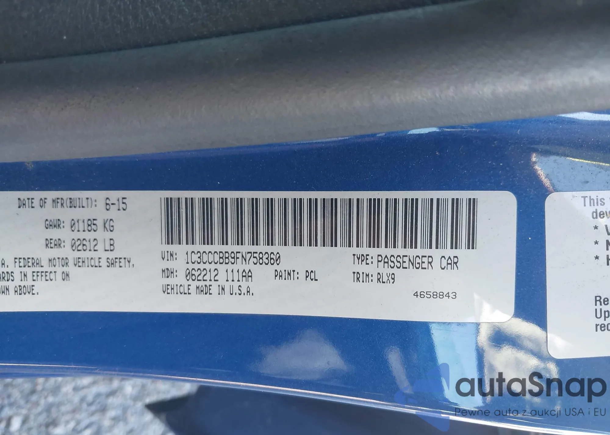 Samochód Chrysler 200 2015 (VIN 1C3CCCBB9FN758360) nie był wcześniej licytowany. Dokumenty są czyste, przebieg odpowiada lub jest niższy niż średnia rynku. Sprzedaje go firma ubezpieczeniowa – polecamy zakup. Dostawa do portu zajmie ok. 6–8 tygodni.