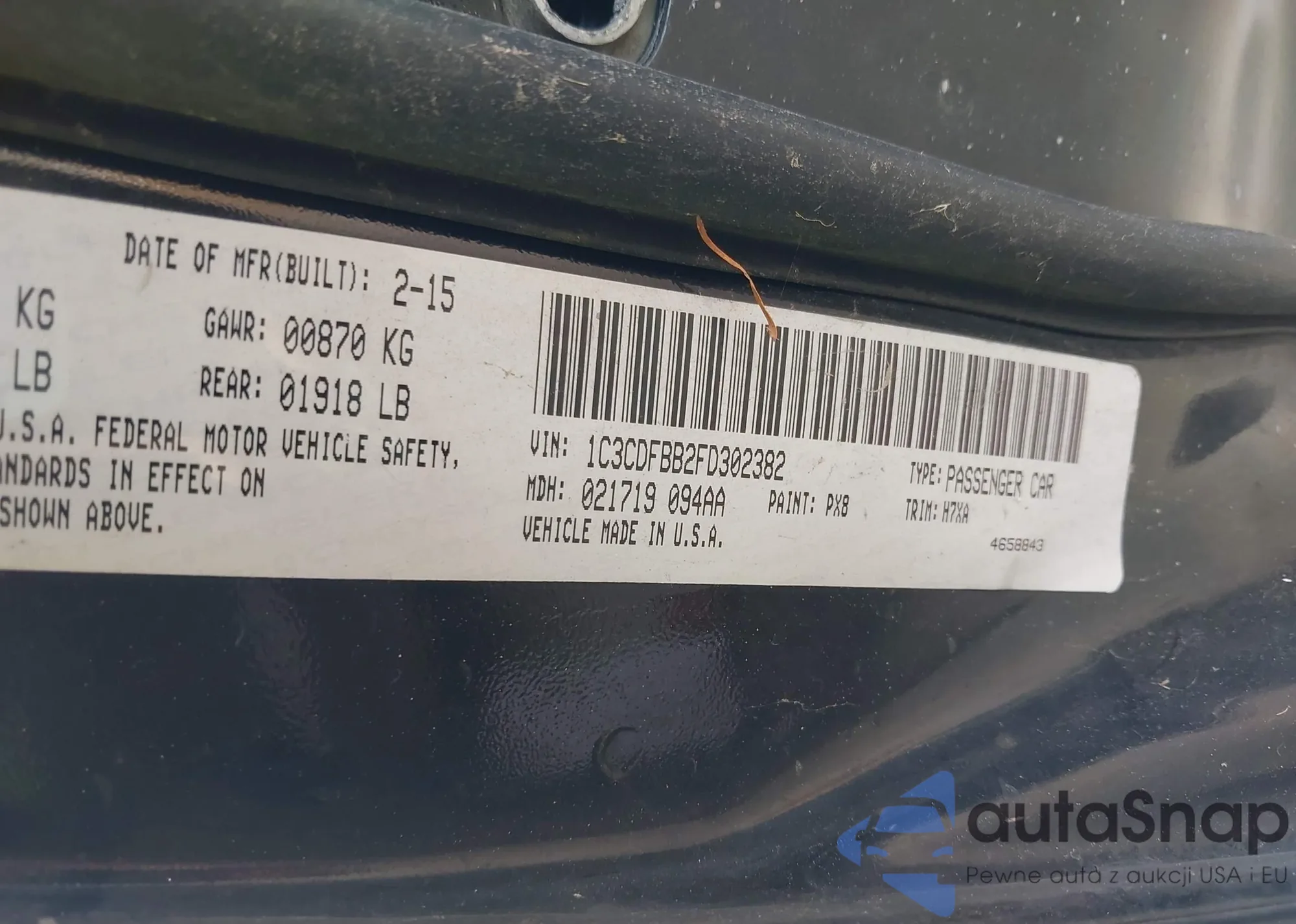 Samochód Dodge Dart 2015 (VIN 1C3CDFBB2FD302382) nie był wcześniej licytowany. Dokumenty są czyste, przebieg odpowiada lub jest niższy niż średnia rynku. Sprzedaje go firma ubezpieczeniowa – polecamy zakup. Dostawa do portu zajmie ok. 6–8 tygodni.