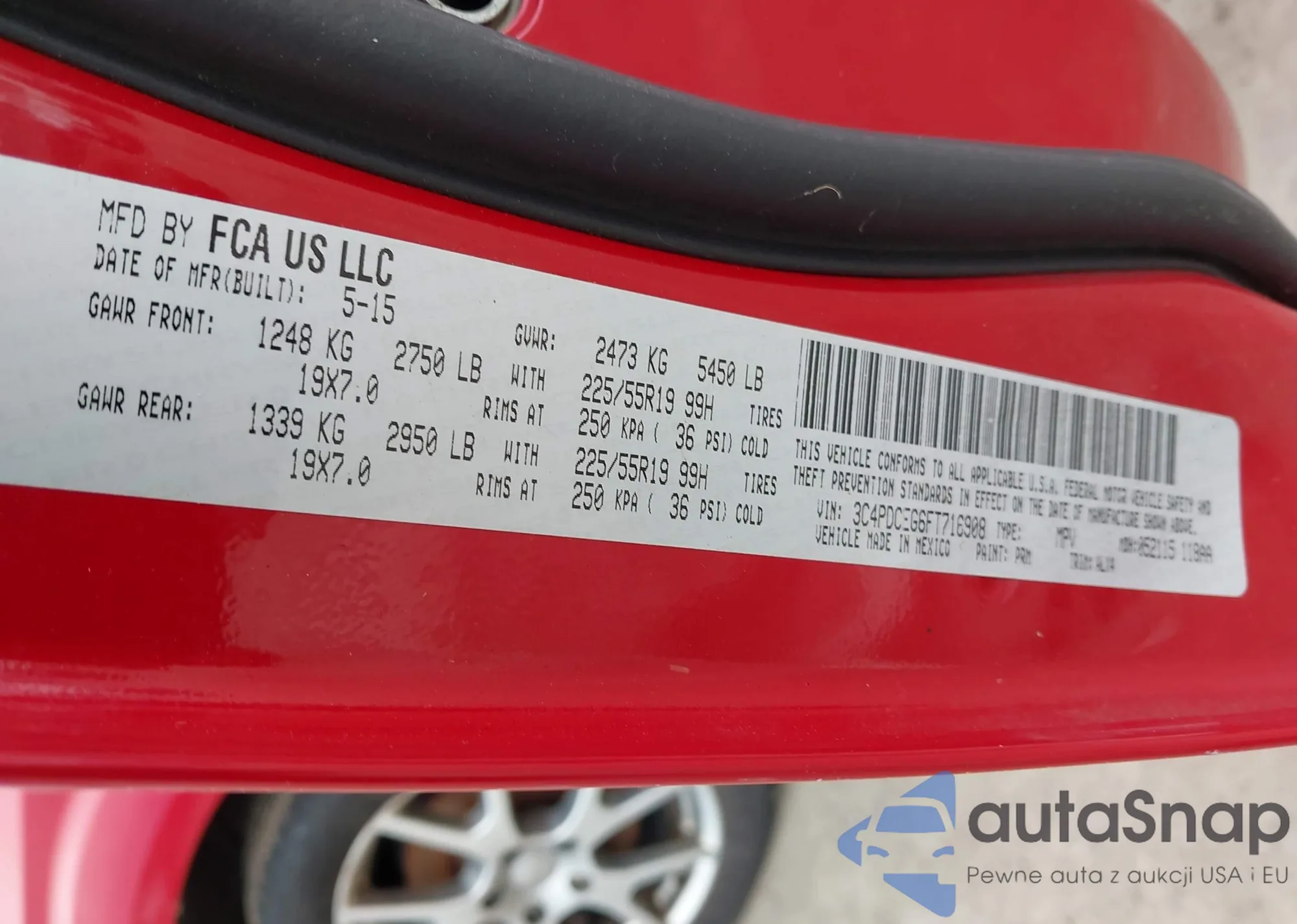 Samochód Dodge Journey 2015 (VIN 3C4PDCEG6FT716908) sprzedaje go niezweryfikowany sprzedawca. Zalecamy raport Carfax i potwierdzenie możliwości rejestracji pojazdu przed zakupem.