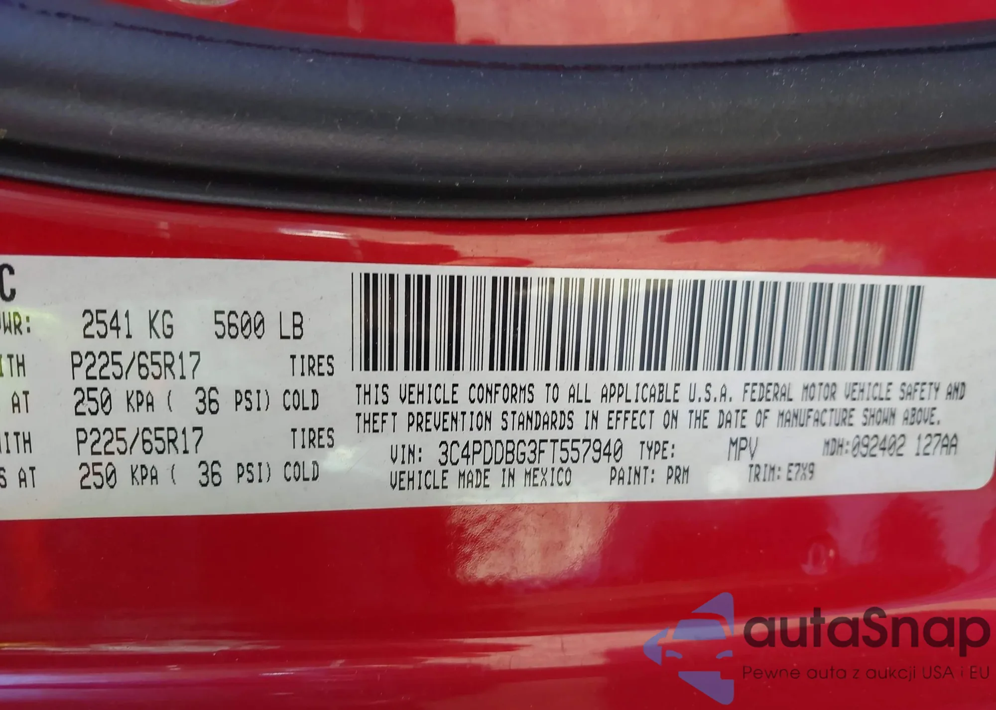 Samochód Dodge Journey 2015 (VIN 3C4PDDBG3FT557940) był już licytowany 1 razy i/lub sprzedaje go niezweryfikowany sprzedawca. Zalecamy raport Carfax i potwierdzenie możliwości rejestracji pojazdu przed zakupem.
