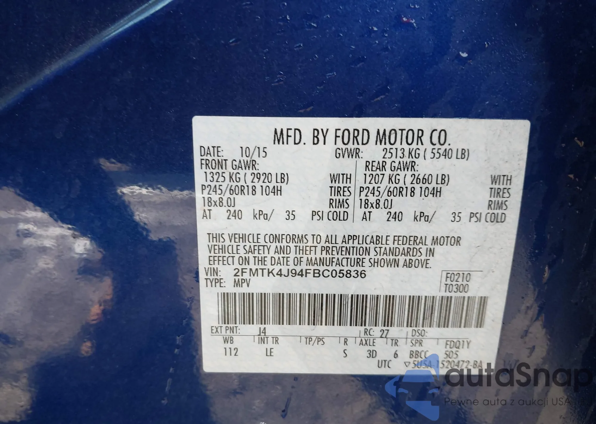 Samochód Ford Edge 2015 (VIN 2FMTK4J94FBC05836) nie był wcześniej licytowany. Dokumenty są czyste, przebieg odpowiada lub jest niższy niż średnia rynku. Sprzedaje go firma ubezpieczeniowa – polecamy zakup. Dostawa do portu zajmie ok. 6–8 tygodni.
