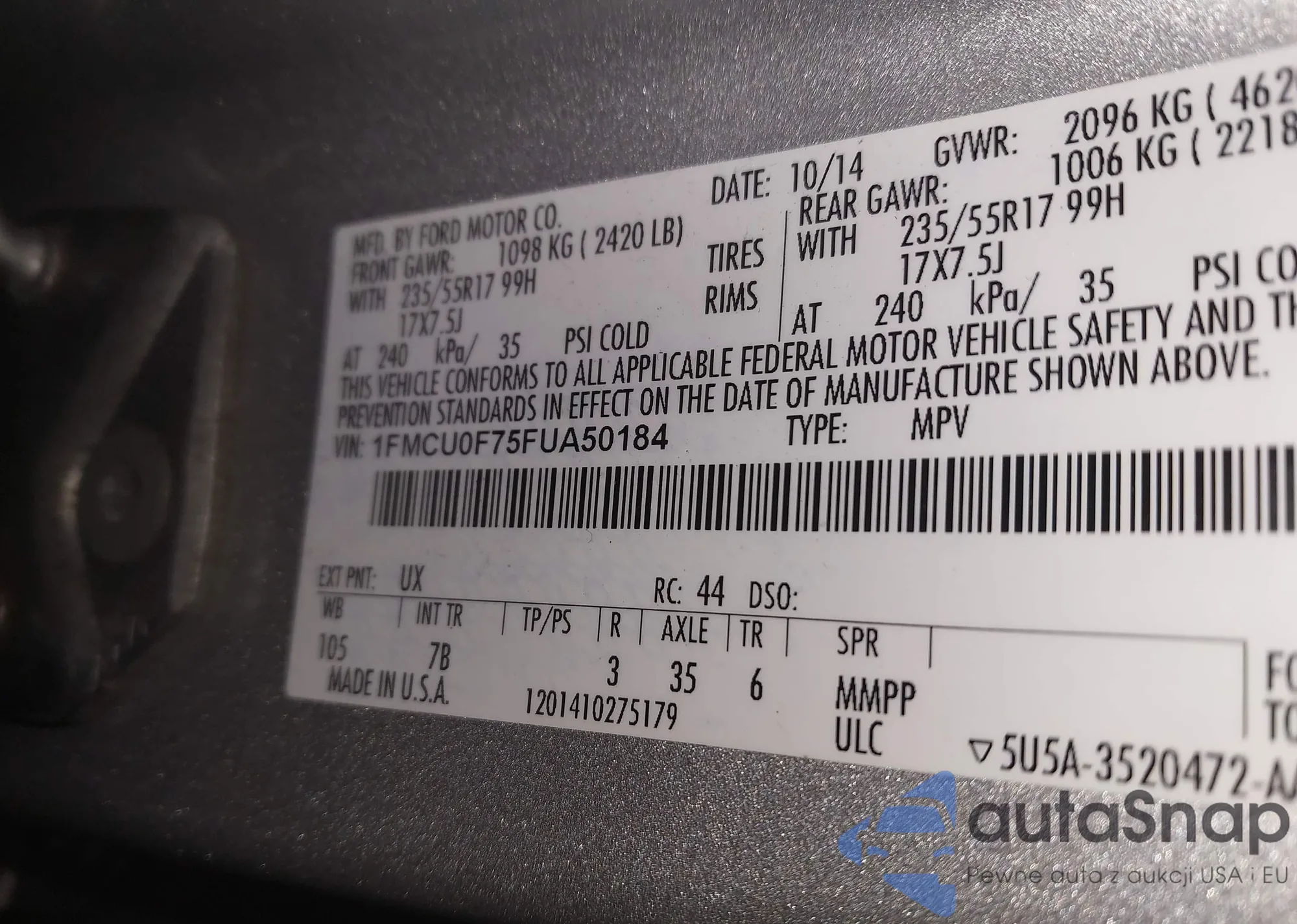 VIN: 1FMCU0F75FUA50184
