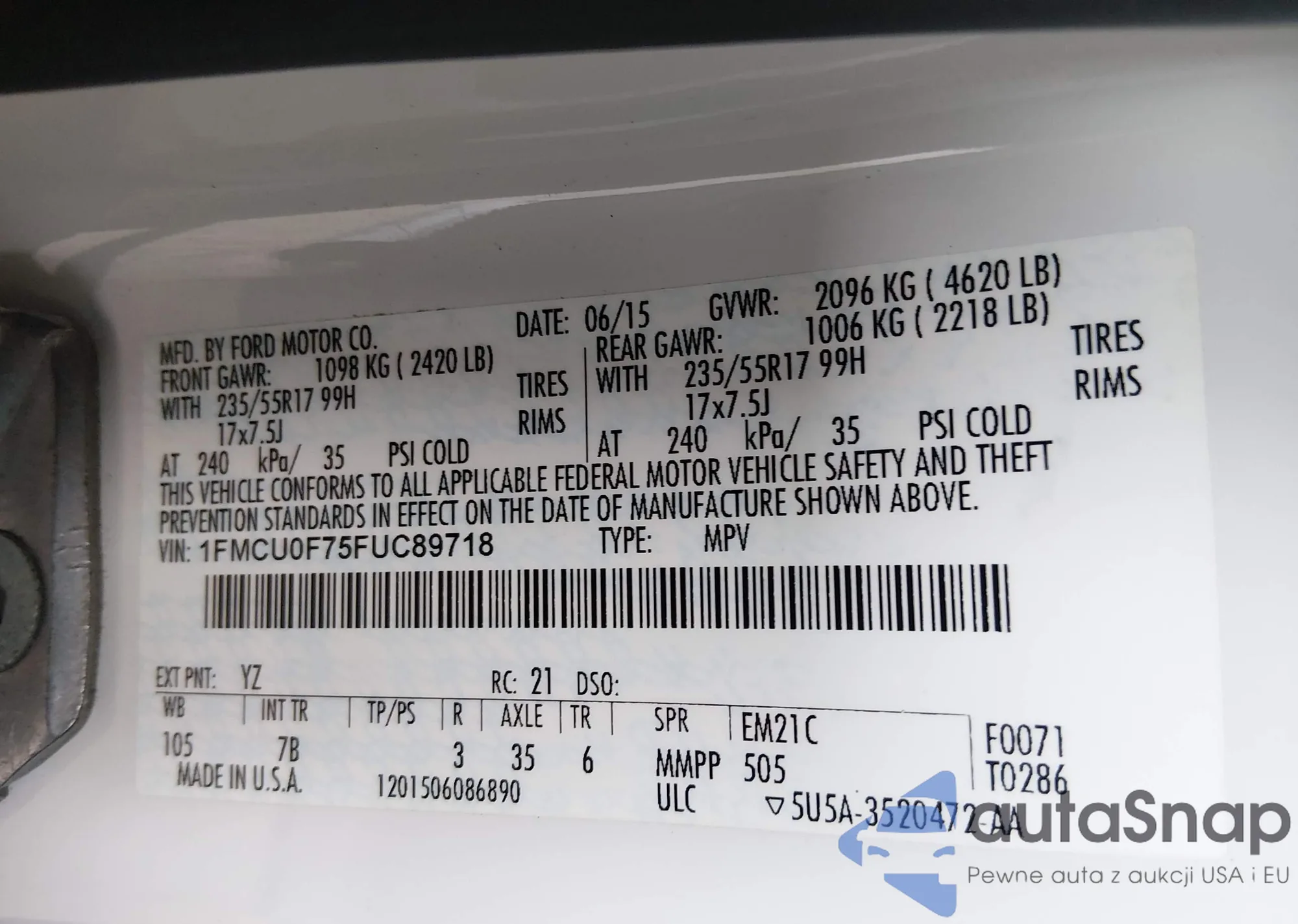 VIN: 1FMCU0F75FUC89718