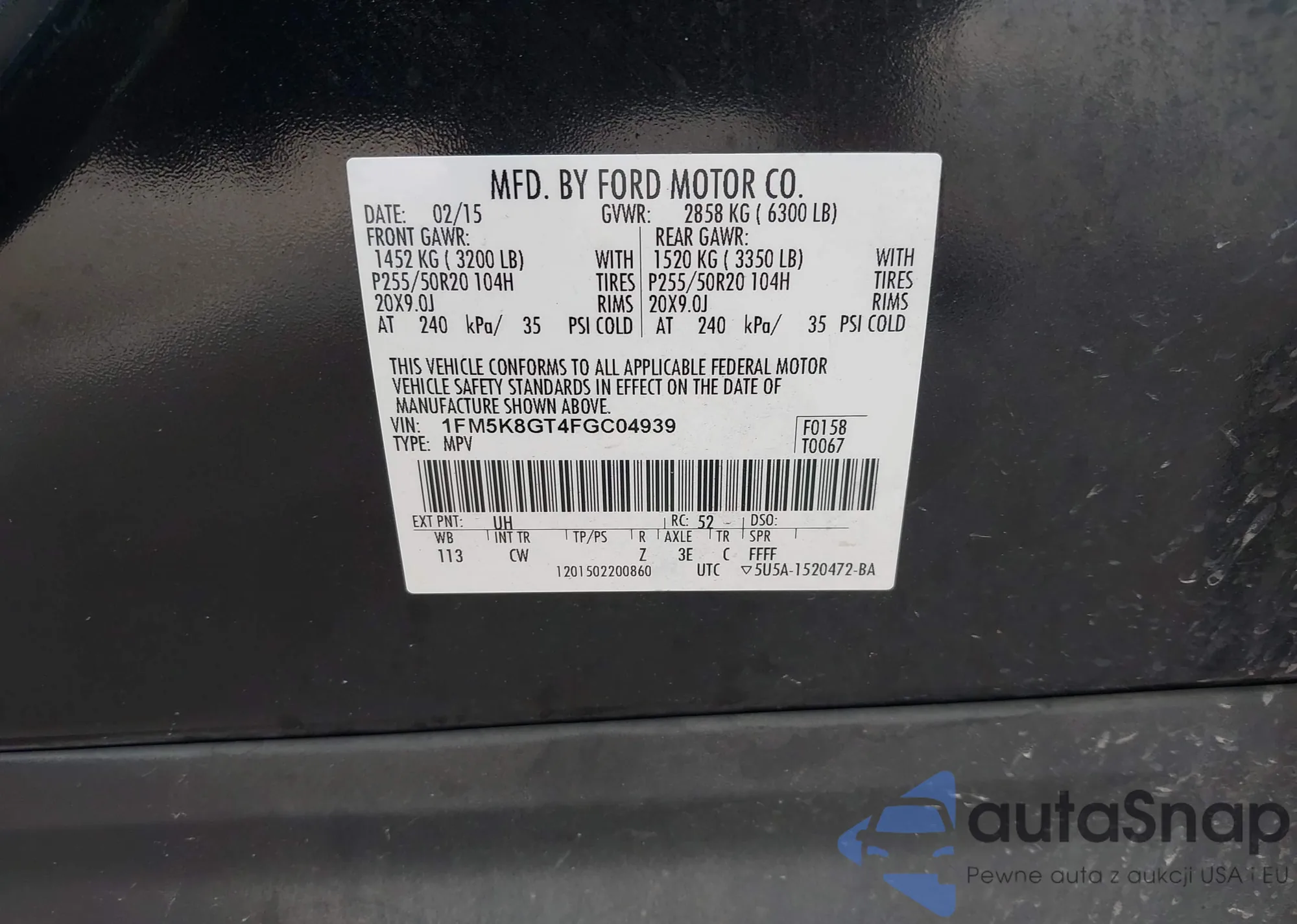VIN: 1FM5K8GT4FGC04939