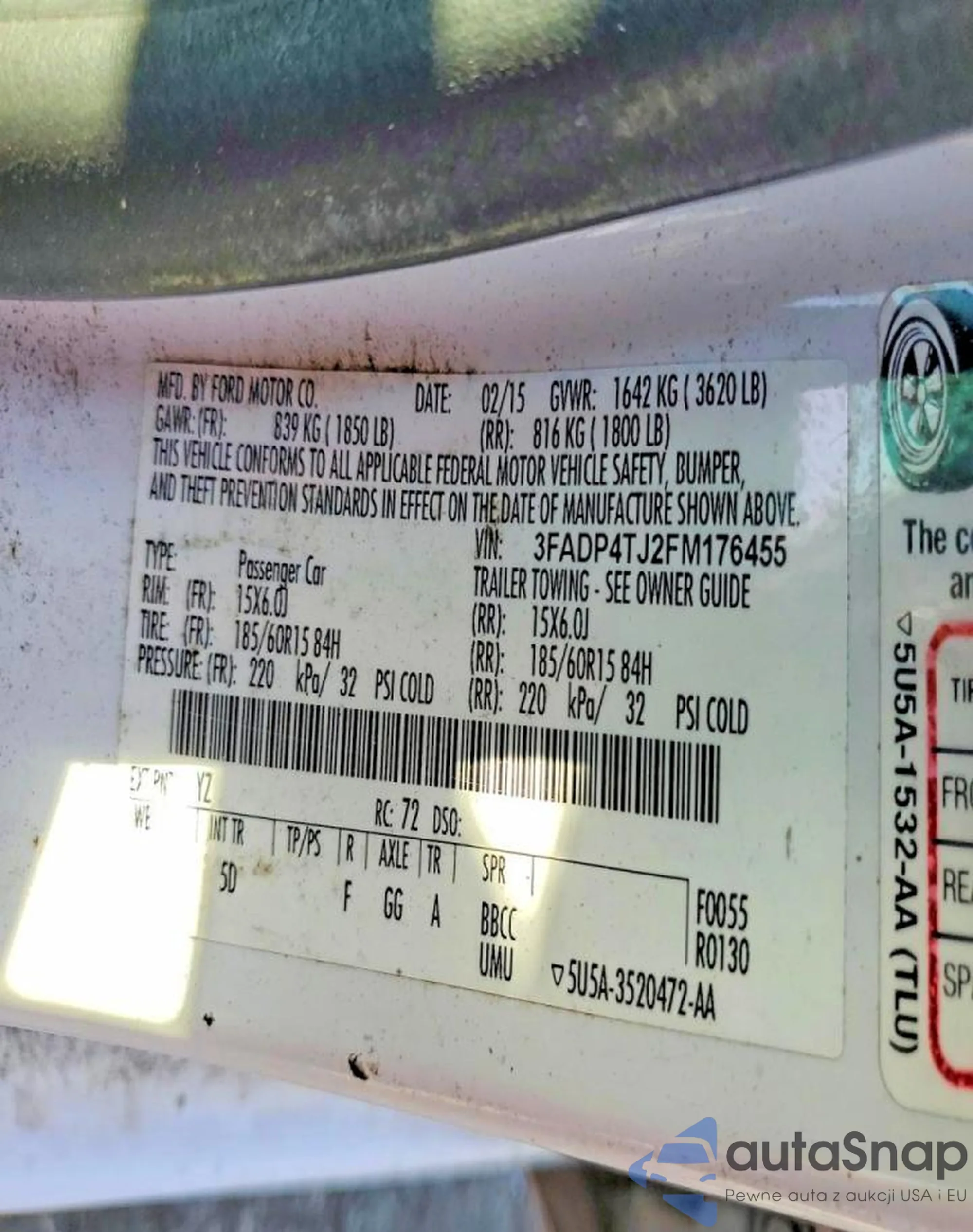 Samochód Ford Fiesta 2015 (VIN 3FADP4TJ2FM176455) nie był wcześniej licytowany. Dokumenty są czyste, przebieg odpowiada lub jest niższy niż średnia rynku. Sprzedaje go firma ubezpieczeniowa – polecamy zakup. Dostawa do portu zajmie ok. 6–8 tygodni.