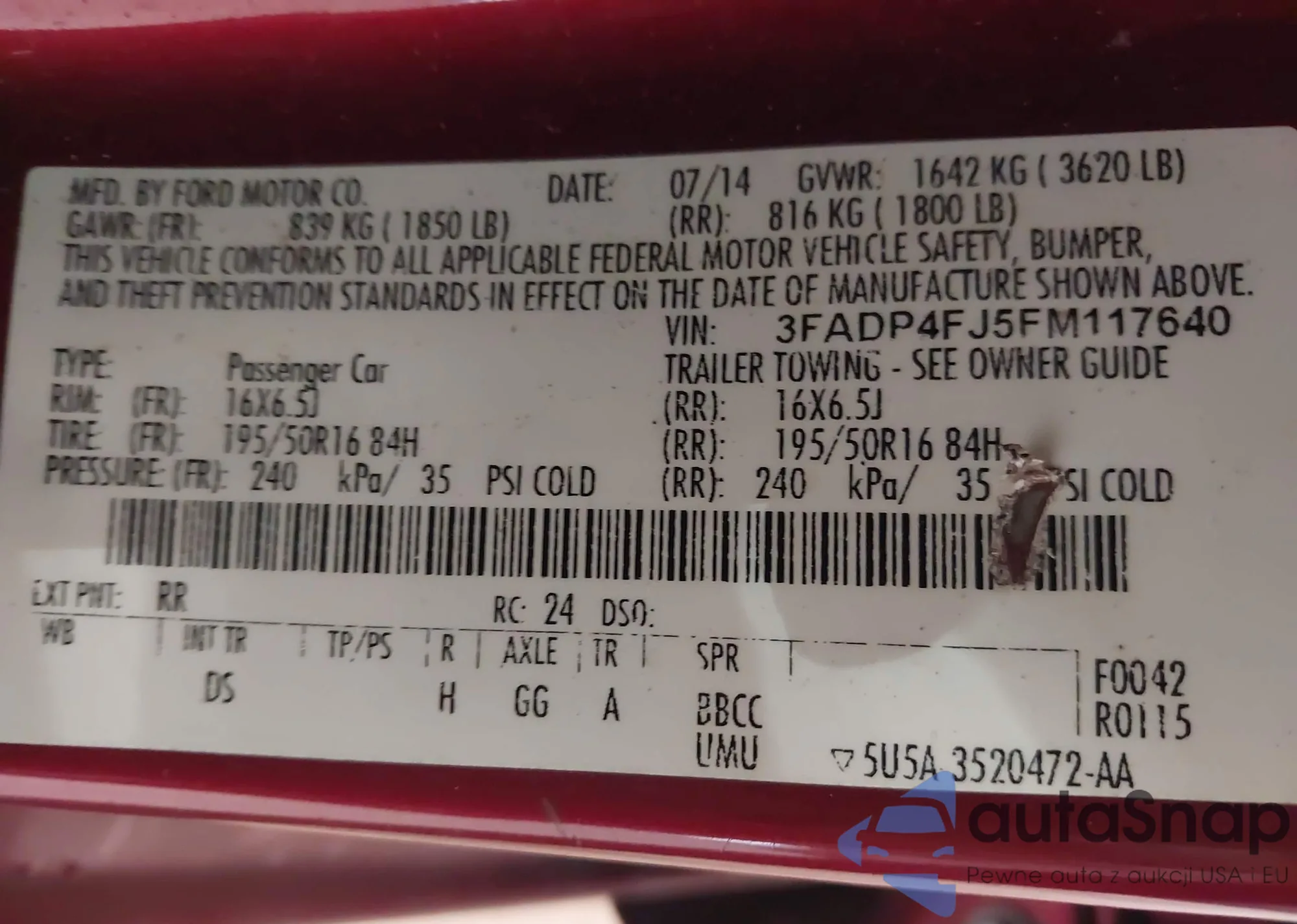 • VIN: 3FADP4FJ5FM117640