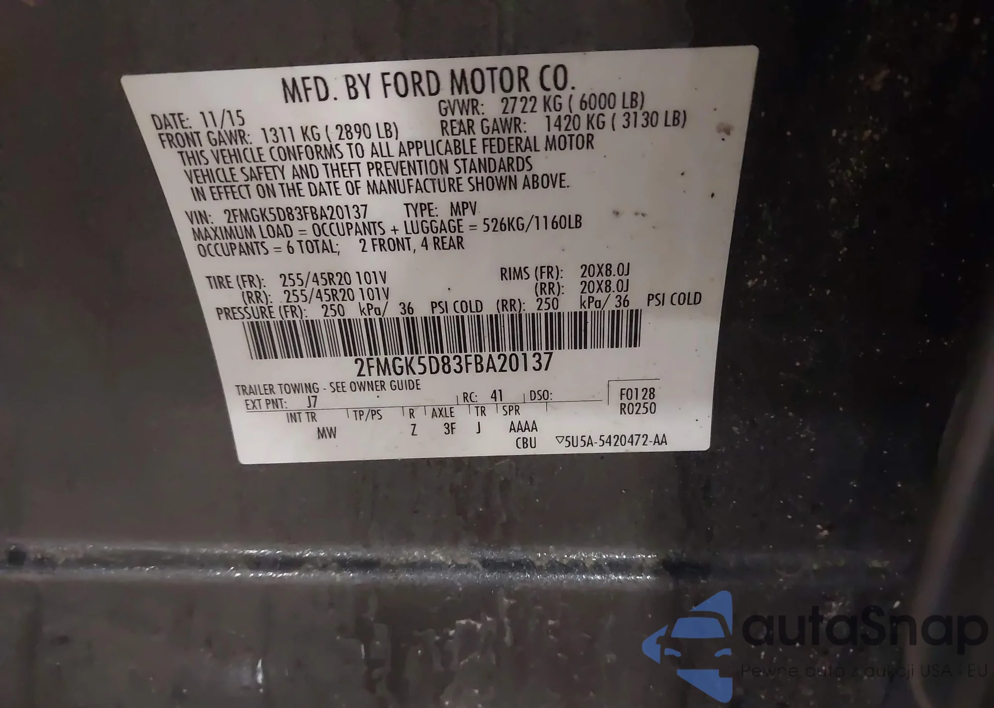 • VIN: 2FMGK5D83FBA20137