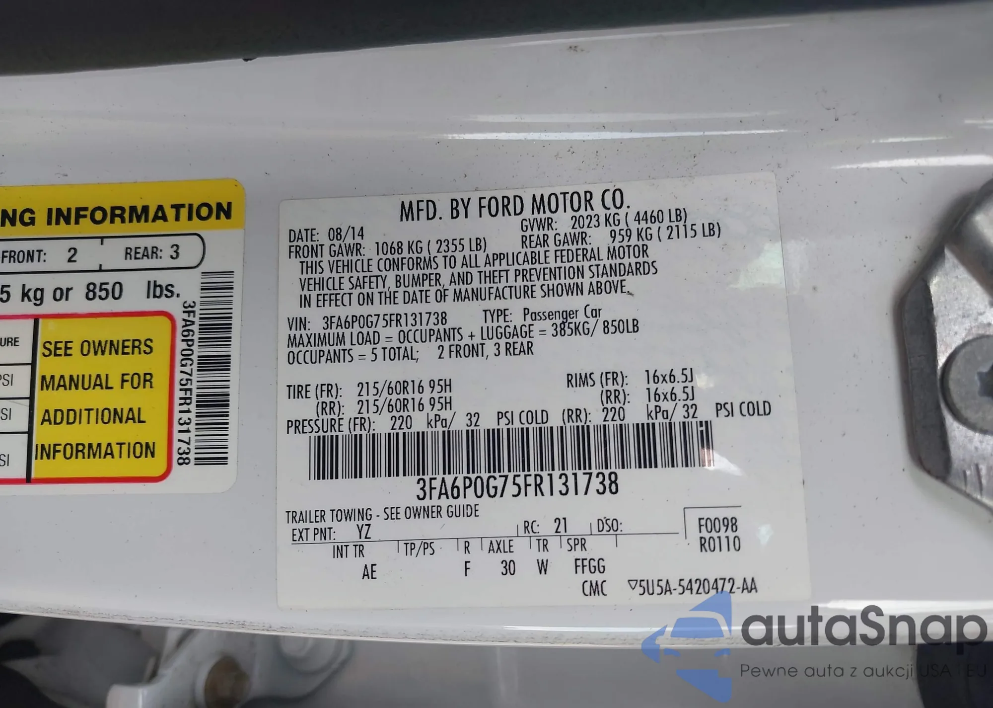 VIN: 3FA6P0G75FR131738