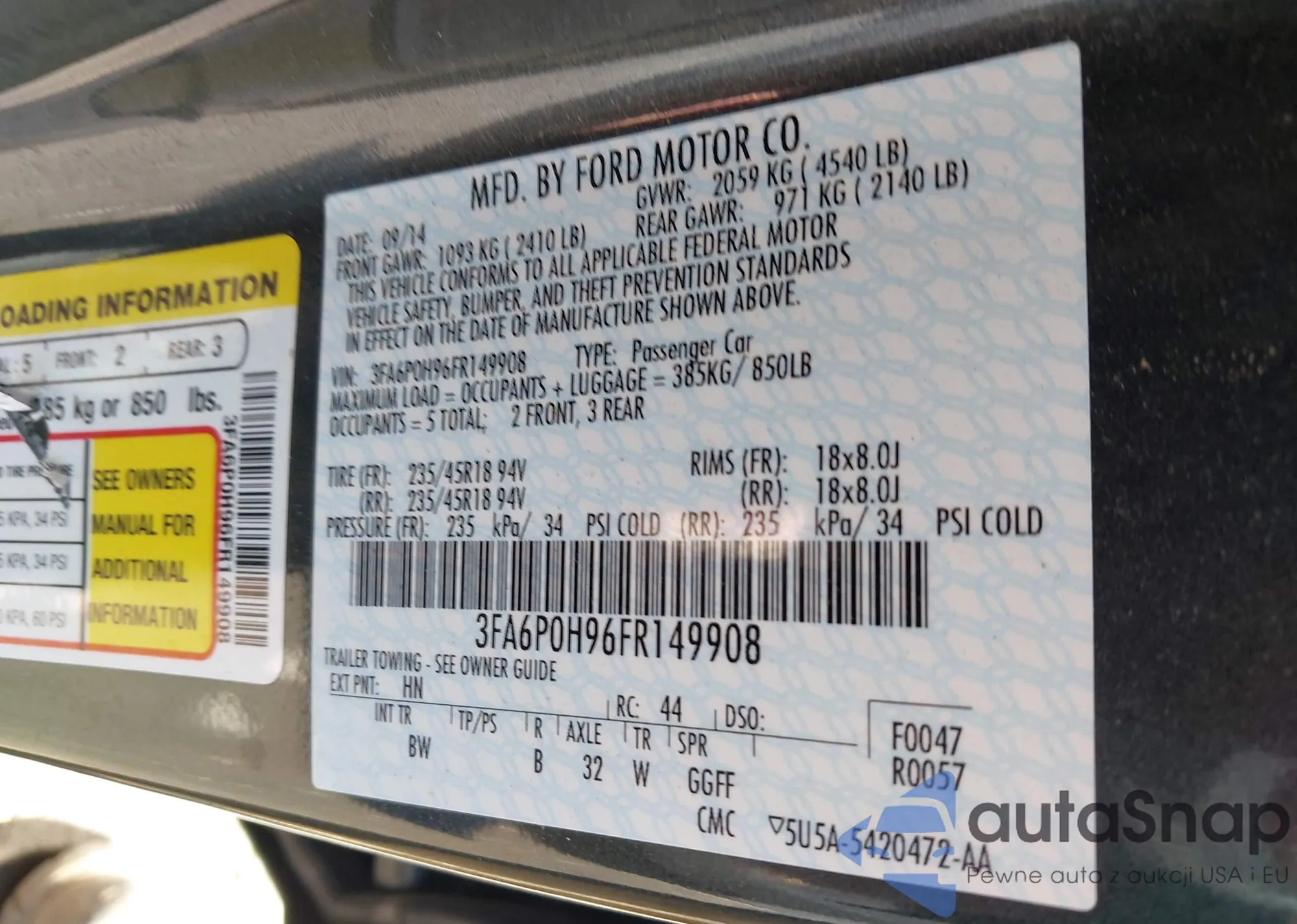 VIN: 3FA6P0H96FR149908