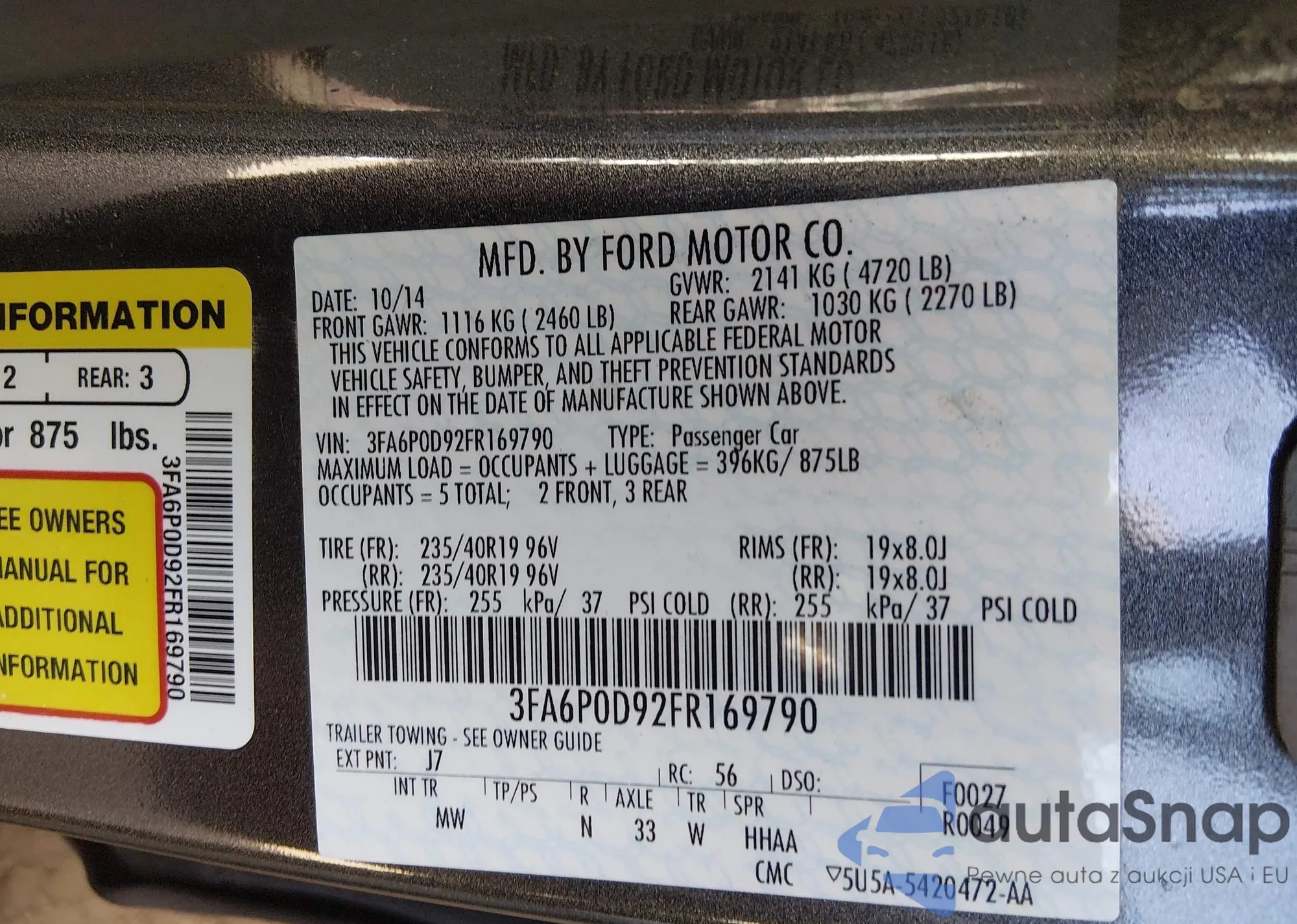 • VIN: 3FA6P0D92FR169790