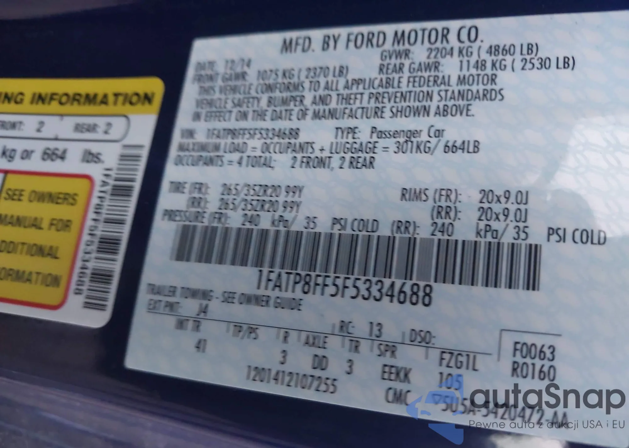 • VIN: 1FATP8FF5F5334688