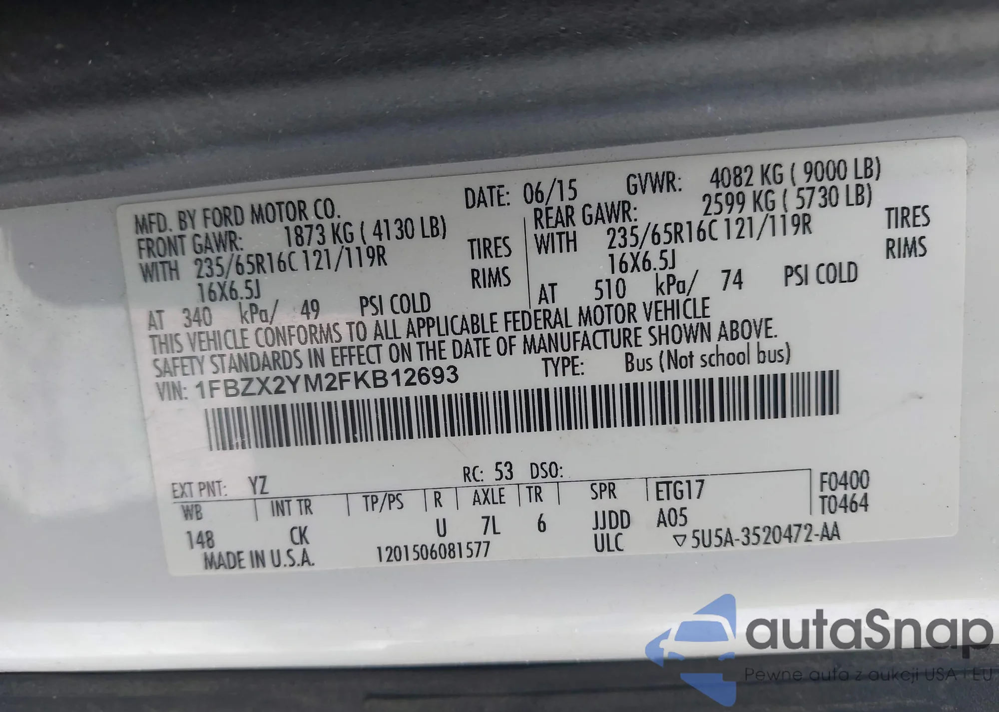 VIN: 1FBZX2YM2FKB12693