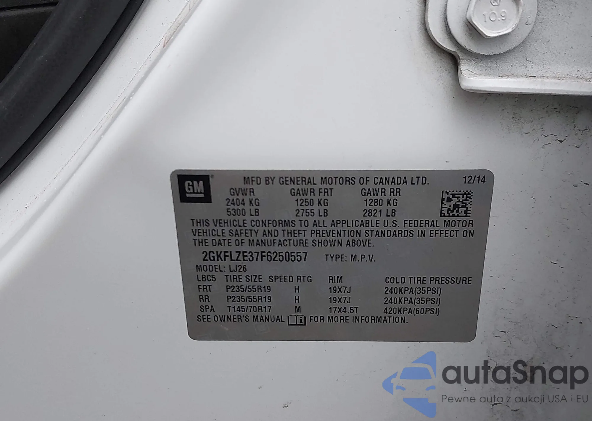 Samochód GMC Terrain 2015 (VIN 2GKFLZE37F6250557) nie był wcześniej licytowany. Dokumenty są czyste, przebieg odpowiada lub jest niższy niż średnia rynku. Sprzedaje go firma ubezpieczeniowa – polecamy zakup. Dostawa do portu zajmie ok. 6–8 tygodni.