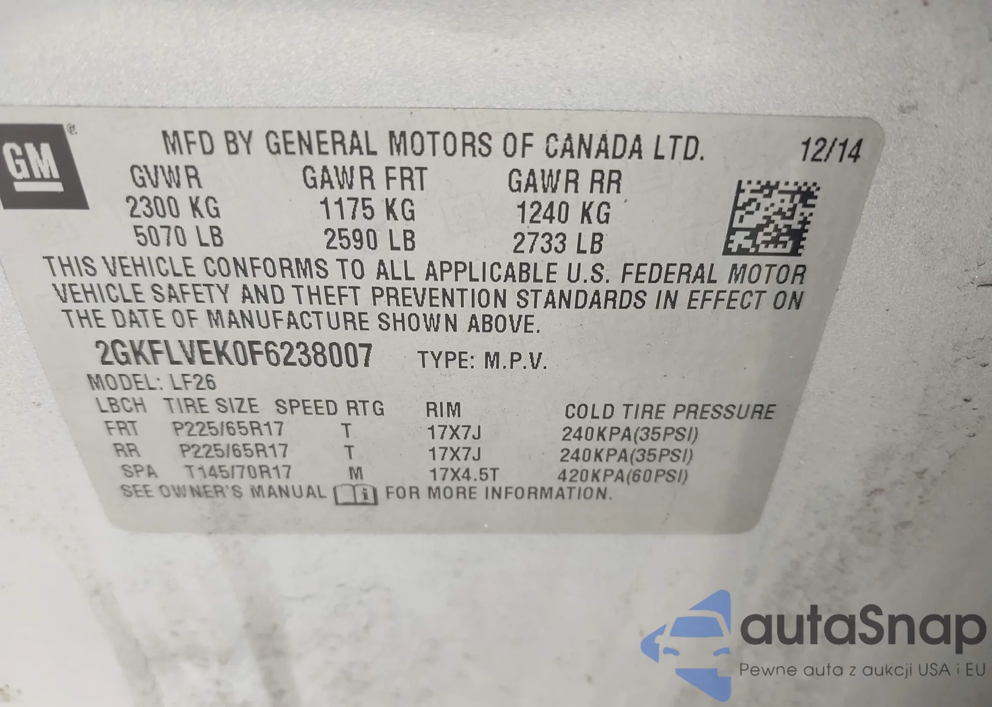 VIN: 2GKFLVEK0F6238007