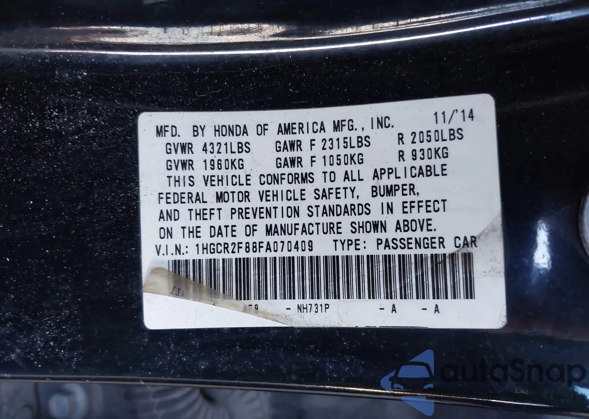 • VIN: 1HGCR2F88FA070409
