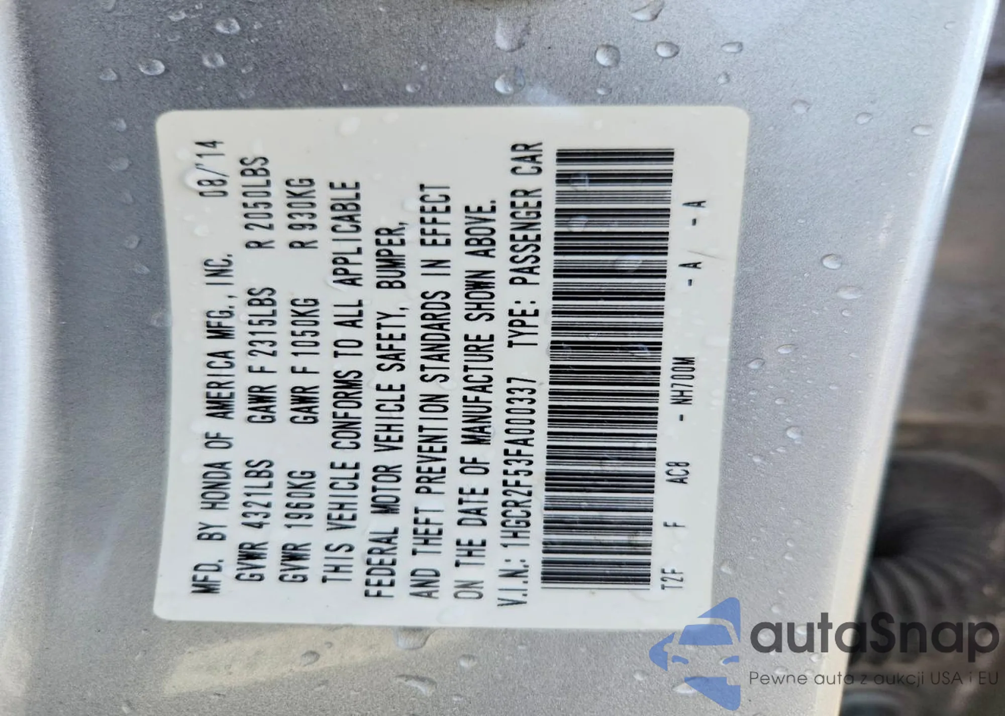 Samochód Honda Accord 2015 (VIN 1HGCR2F53FA000337) nie był wcześniej licytowany. Dokumenty są czyste, przebieg odpowiada lub jest niższy niż średnia rynku. Sprzedaje go firma ubezpieczeniowa – polecamy zakup. Dostawa do portu zajmie ok. 6–8 tygodni.