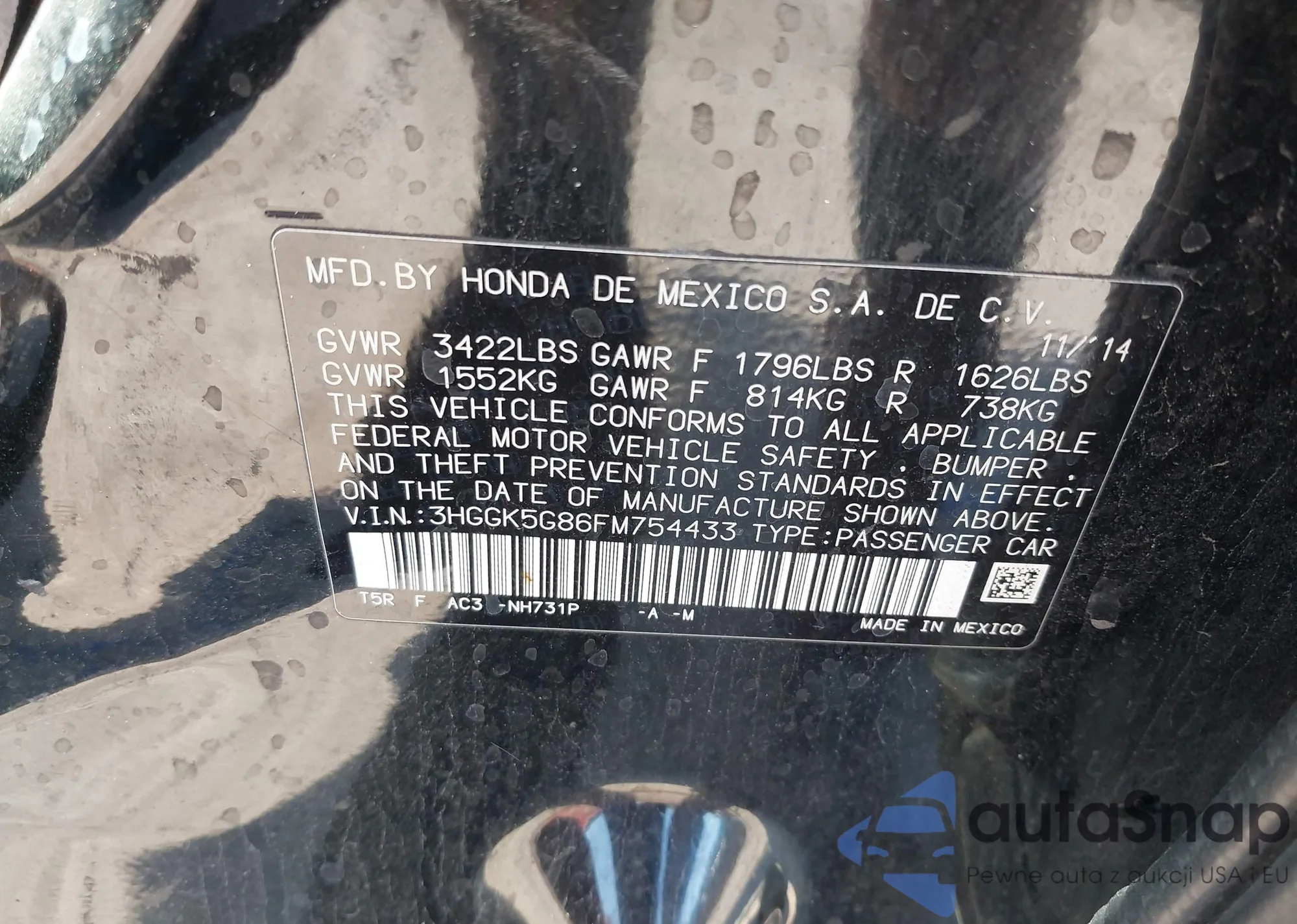 VIN: 3HGGK5G86FM754433