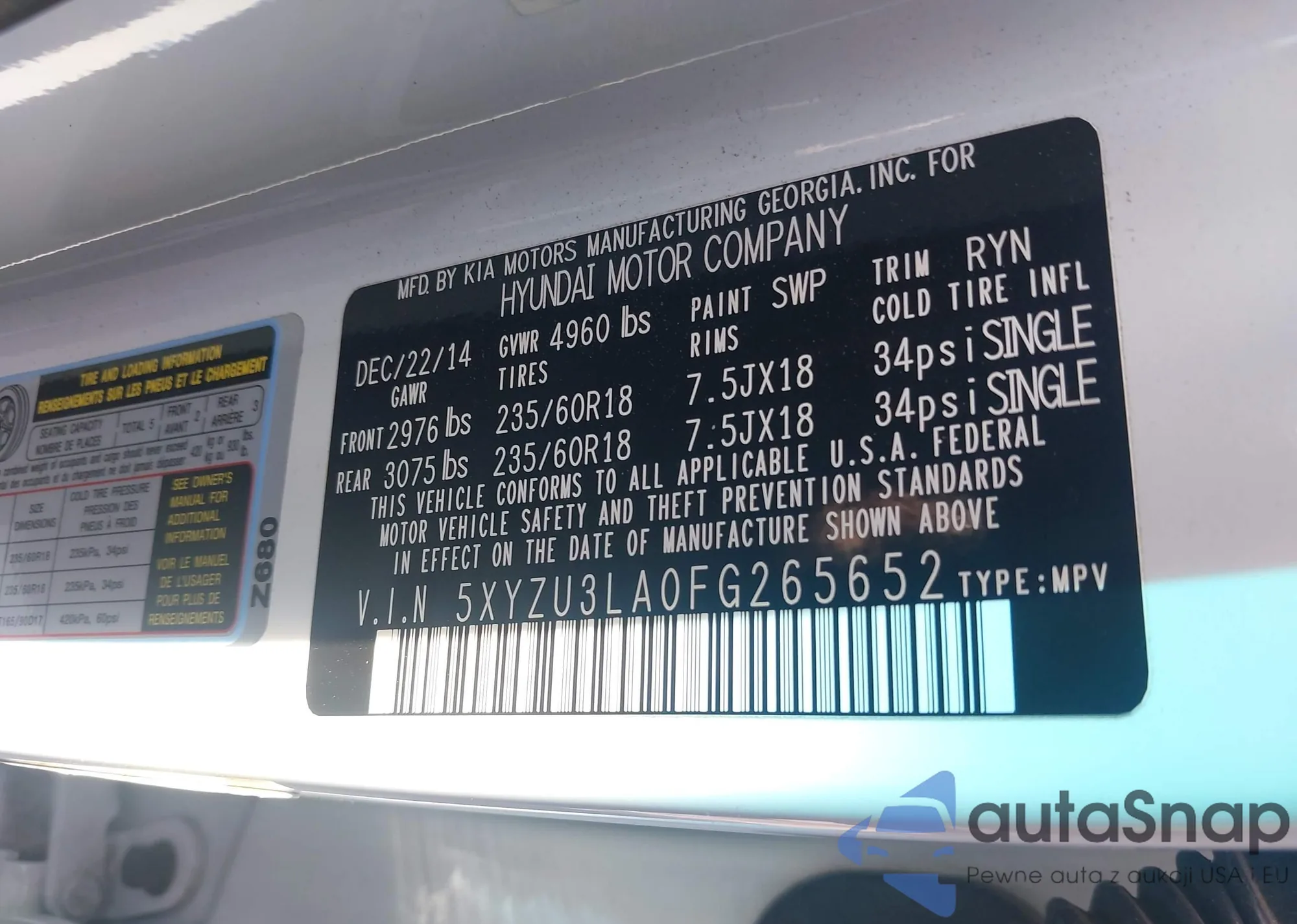 • VIN: 5XYZU3LA0FG265652