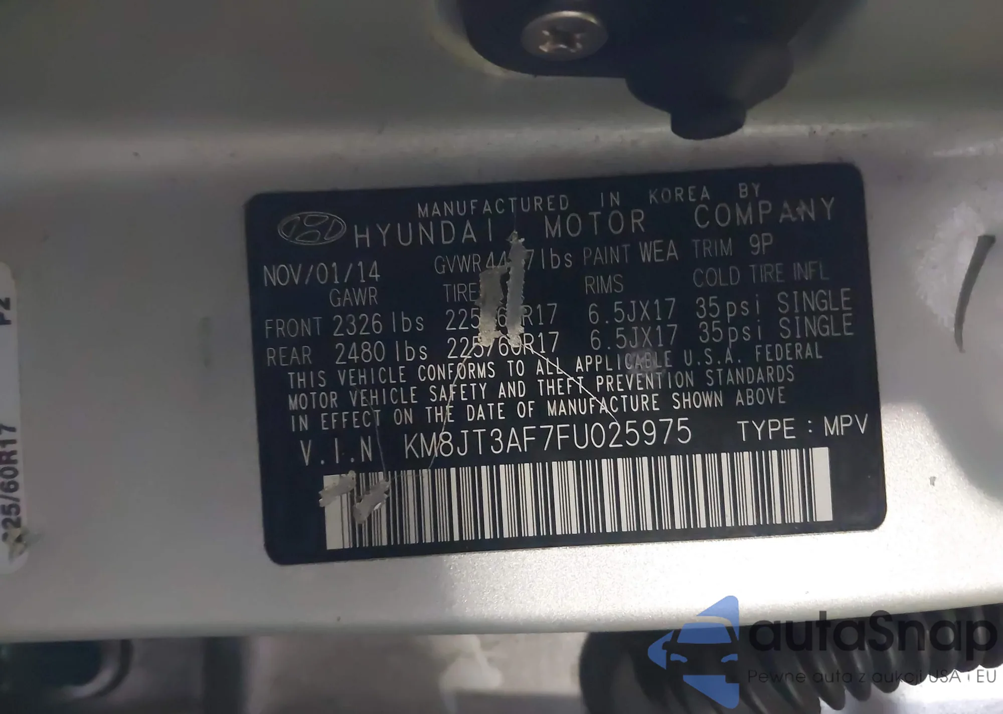 Samochód Hyundai Tucson 2015 (VIN KM8JT3AF7FU025975) nie był wcześniej licytowany. Dokumenty są czyste, przebieg odpowiada lub jest niższy niż średnia rynku. Sprzedaje go firma ubezpieczeniowa – polecamy zakup. Dostawa do portu zajmie ok. 6–8 tygodni.