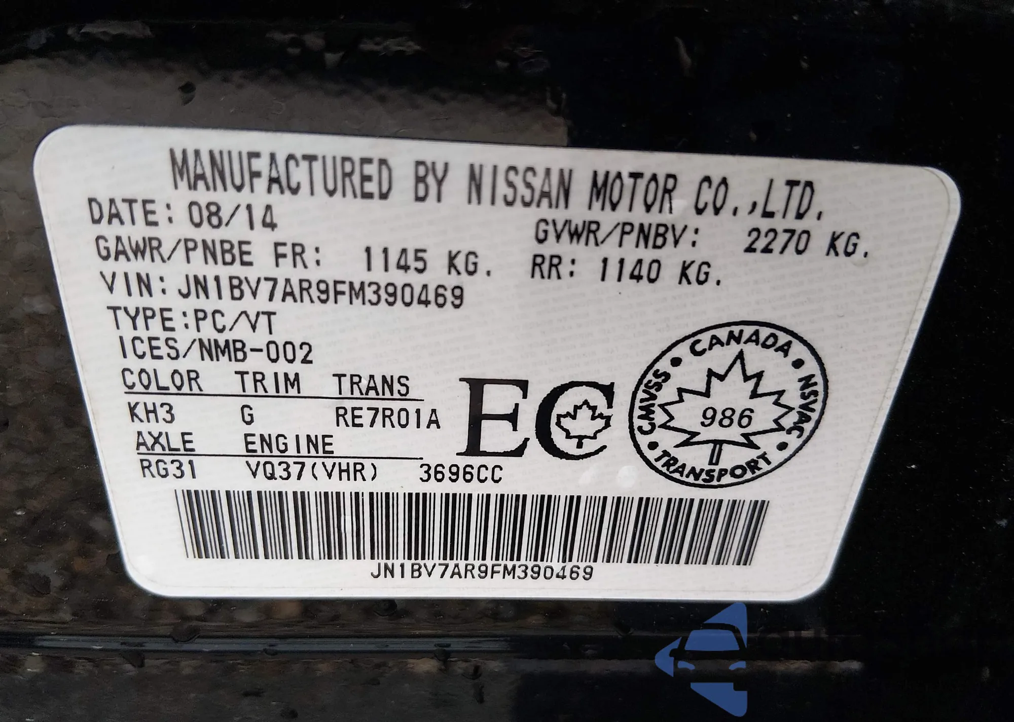 • VIN: JN1BV7AR9FM390469