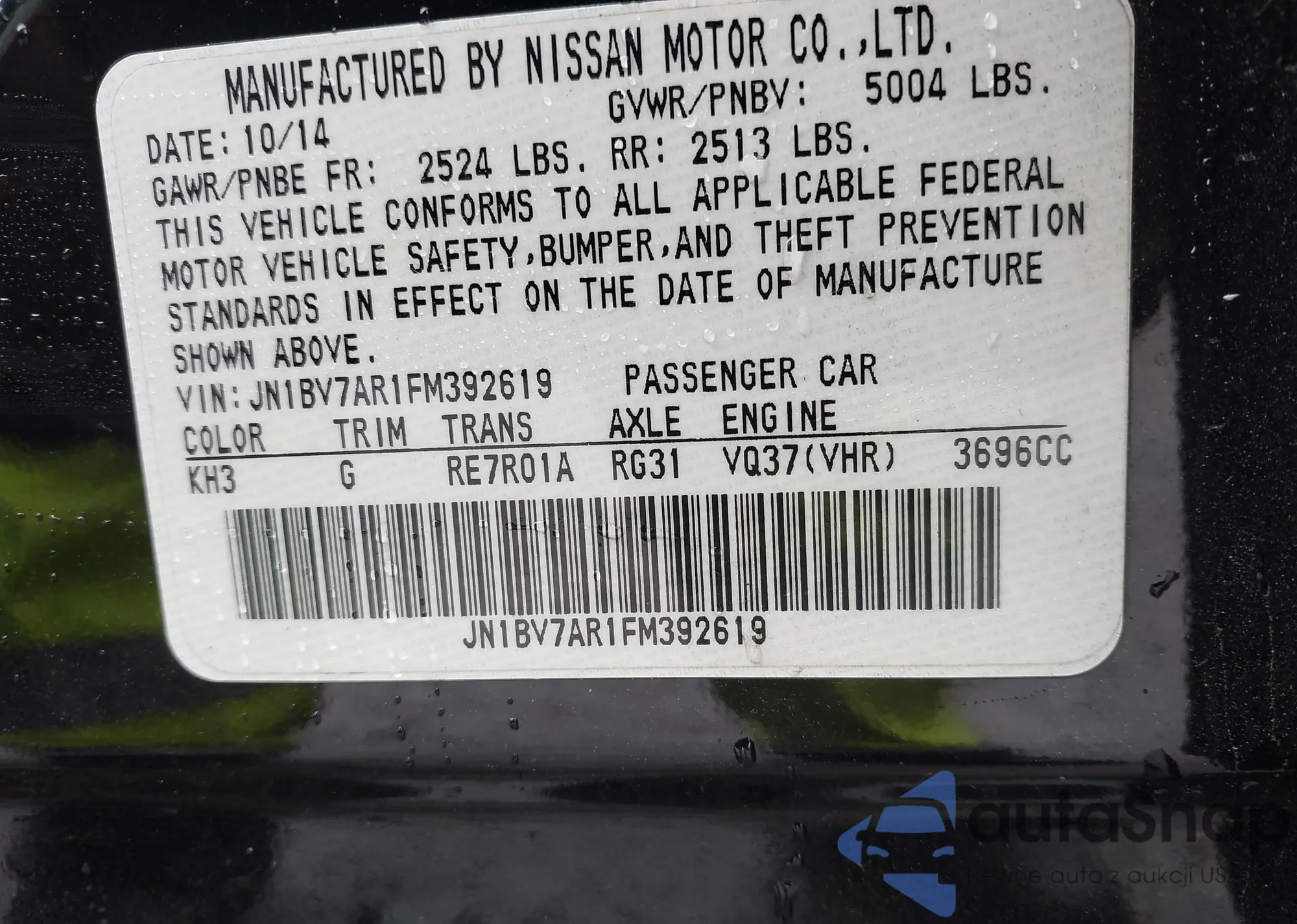 • VIN: JN1BV7AR1FM392619