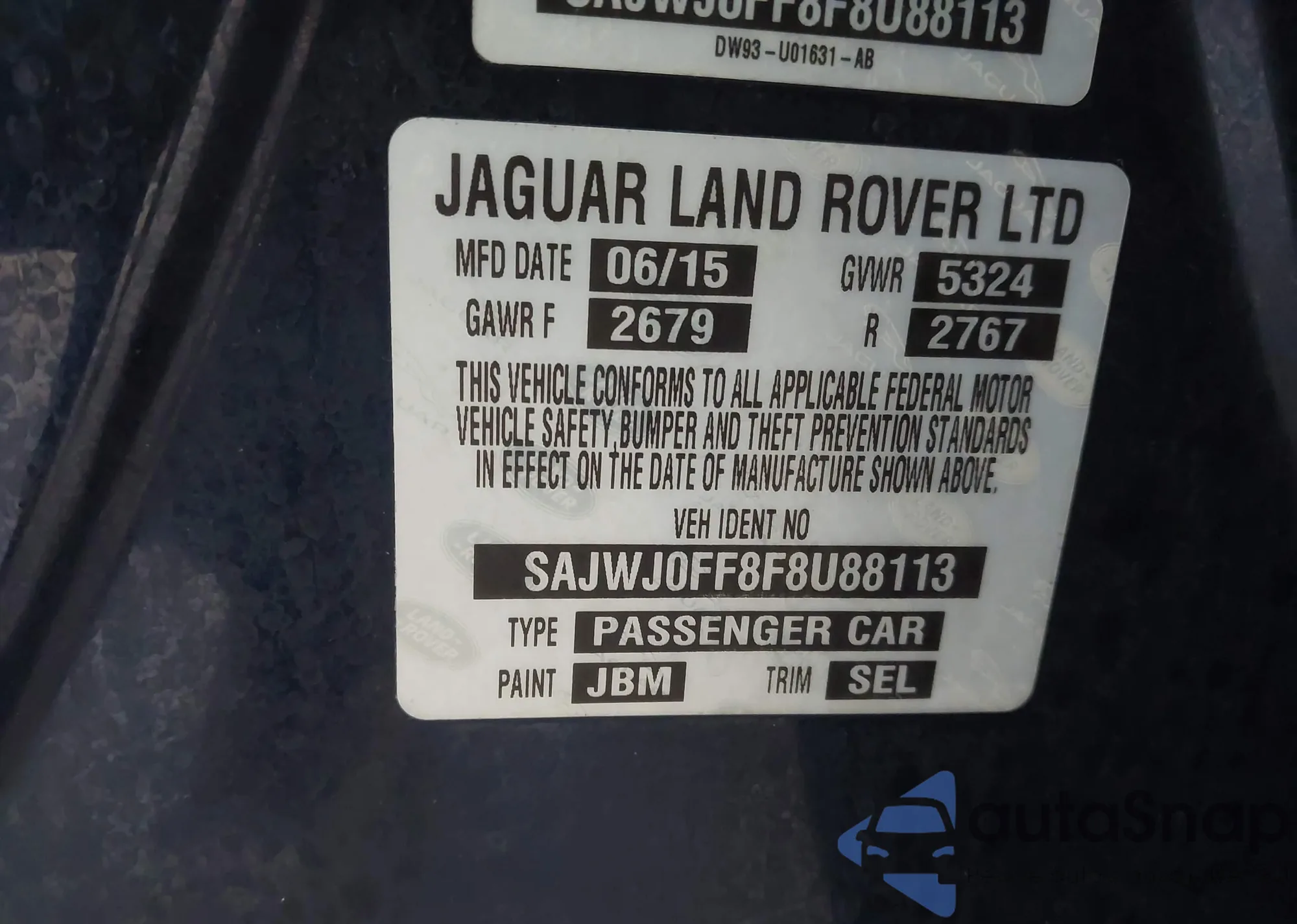 • VIN: SAJWJ0FF8F8U88113