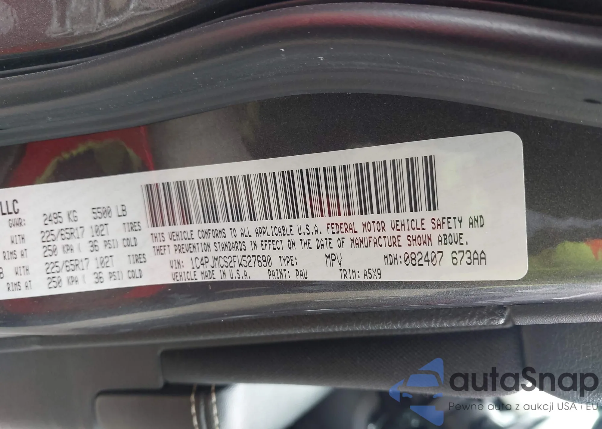 Samochód Jeep Cherokee 2015 (VIN 1C4PJMCS2FW527690) nie był wcześniej licytowany. Dokumenty są czyste, przebieg odpowiada lub jest niższy niż średnia rynku. Sprzedaje go firma ubezpieczeniowa – polecamy zakup. Dostawa do portu zajmie ok. 6–8 tygodni.