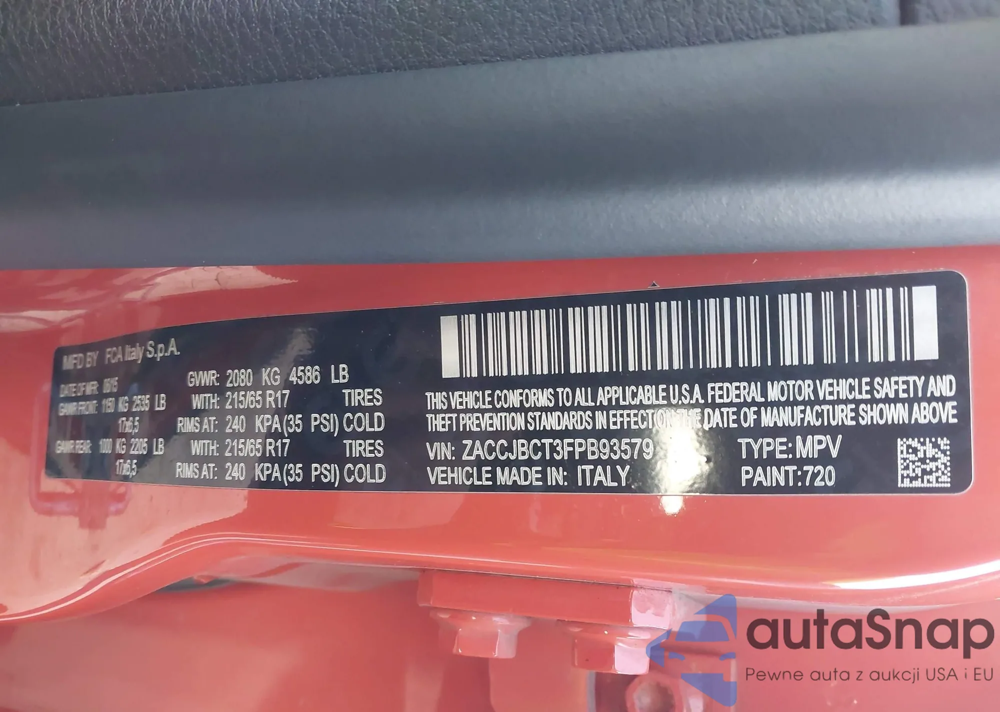 • VIN: ZACCJBCT3FPB93579