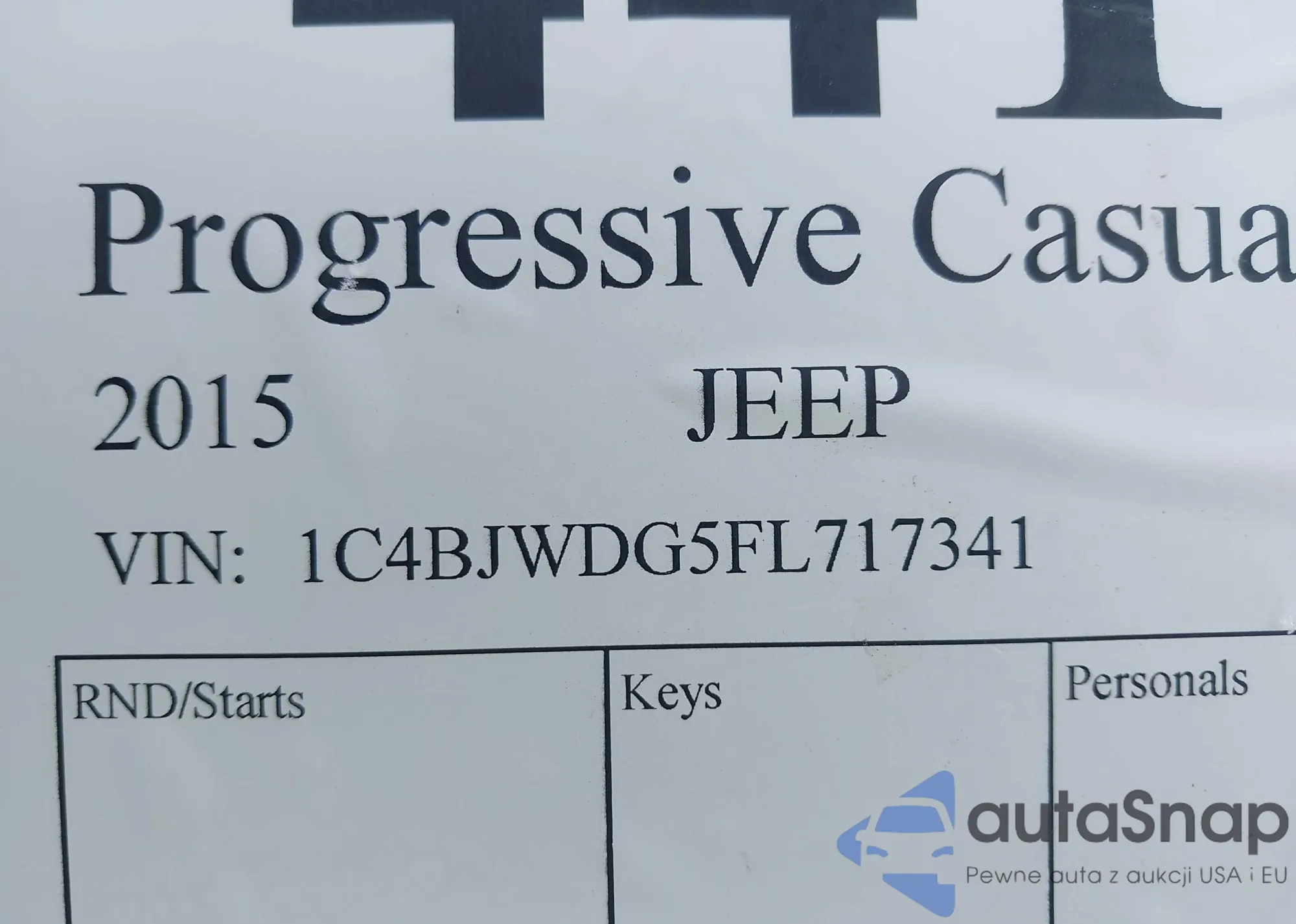 Samochód Jeep Wrangler 2015 (VIN 1C4BJWDG5FL717341) nie był wcześniej licytowany. Dokumenty są czyste, przebieg odpowiada lub jest niższy niż średnia rynku. Sprzedaje go firma ubezpieczeniowa – polecamy zakup. Dostawa do portu zajmie ok. 6–8 tygodni.