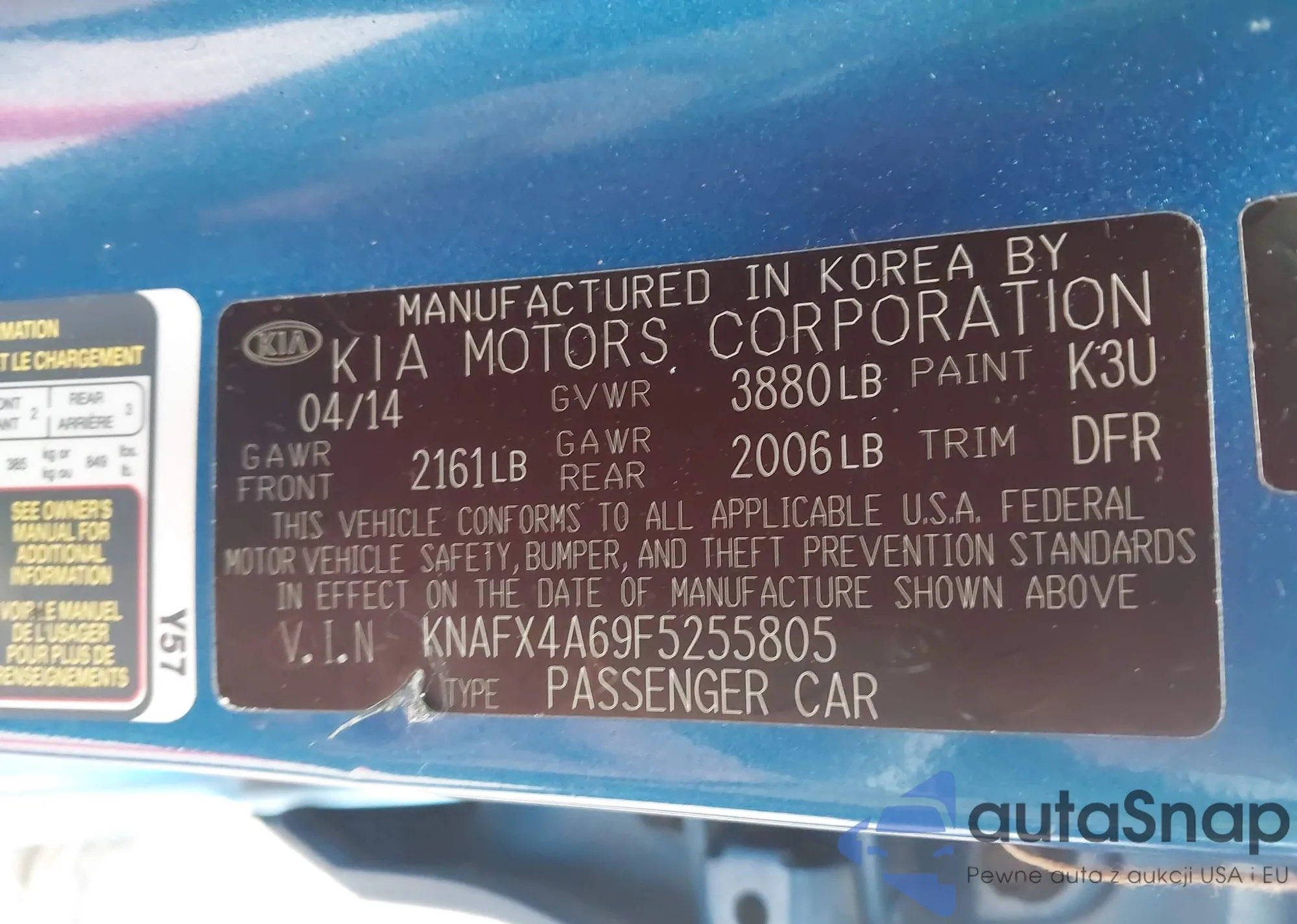 VIN: KNAFX4A69F5255805