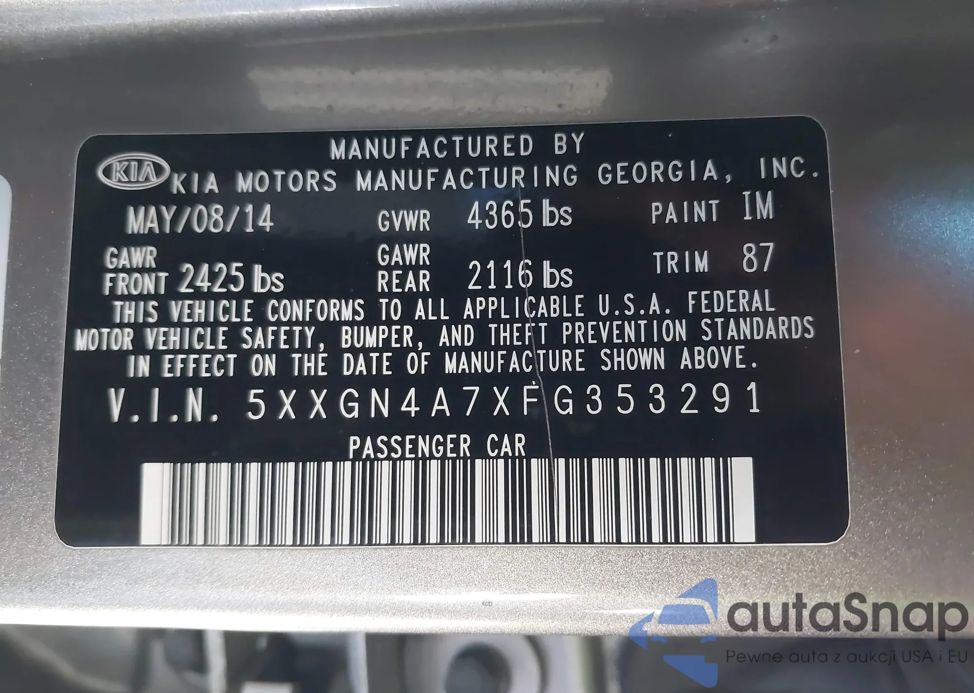 Samochód Kia Optima 2015 (VIN 5XXGN4A7XFG353291) nie był wcześniej licytowany. Dokumenty są czyste, przebieg odpowiada lub jest niższy niż średnia rynku. Sprzedaje go firma ubezpieczeniowa – polecamy zakup. Dostawa do portu zajmie ok. 6–8 tygodni.