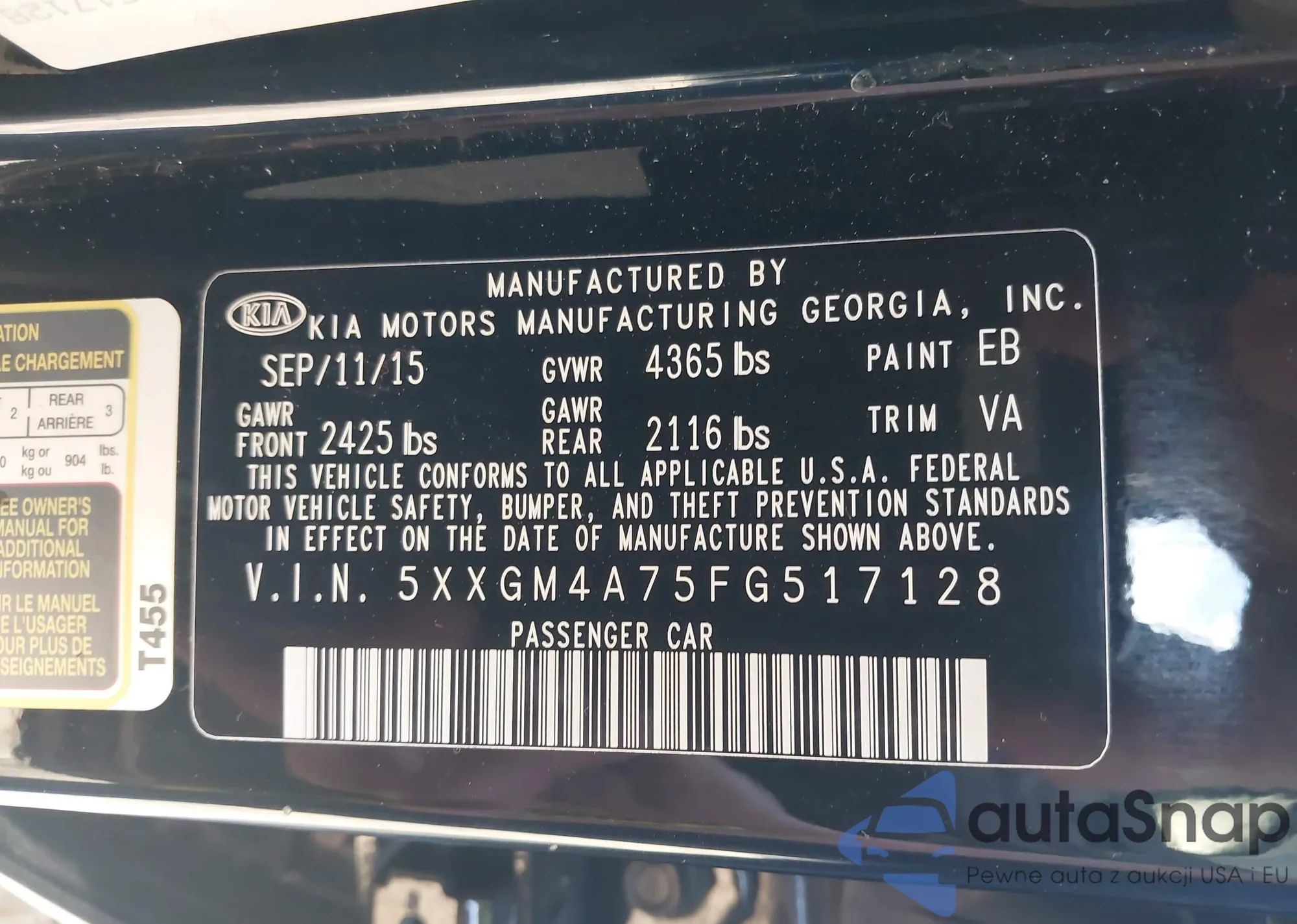 Samochód Kia Optima 2015 (VIN 5XXGM4A75FG517128) sprzedaje go niezweryfikowany sprzedawca. Zalecamy raport Carfax i potwierdzenie możliwości rejestracji pojazdu przed zakupem.
