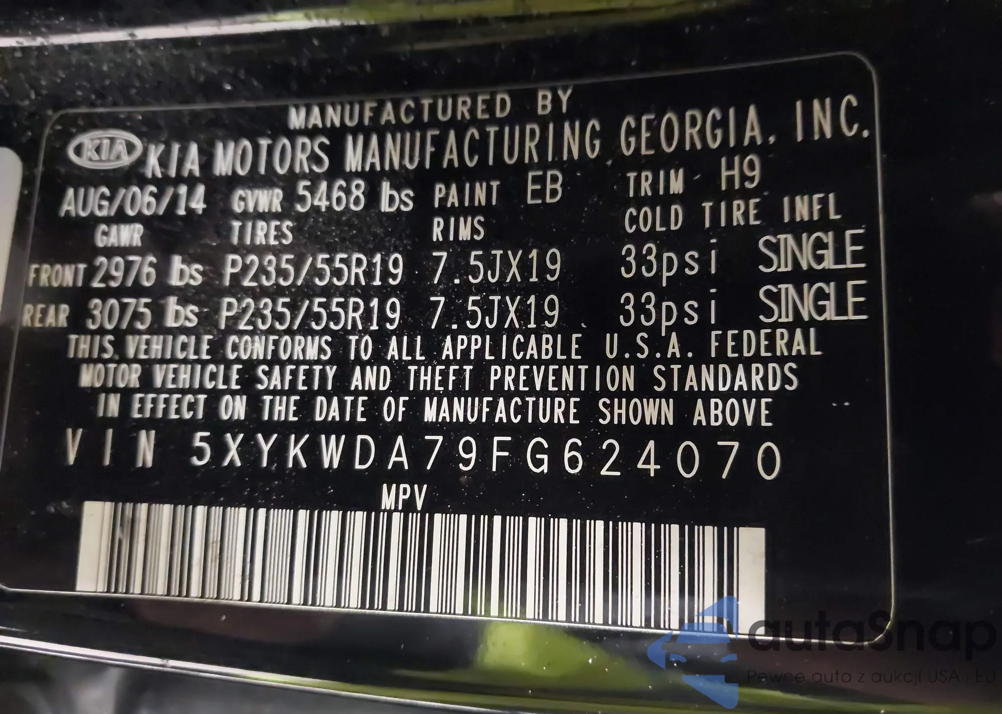Samochód Kia Sorento 2015 (VIN 5XYKWDA79FG624070) nie był wcześniej licytowany. Dokumenty są czyste, przebieg odpowiada lub jest niższy niż średnia rynku. Sprzedaje go firma ubezpieczeniowa – polecamy zakup. Dostawa do portu zajmie ok. 6–8 tygodni.