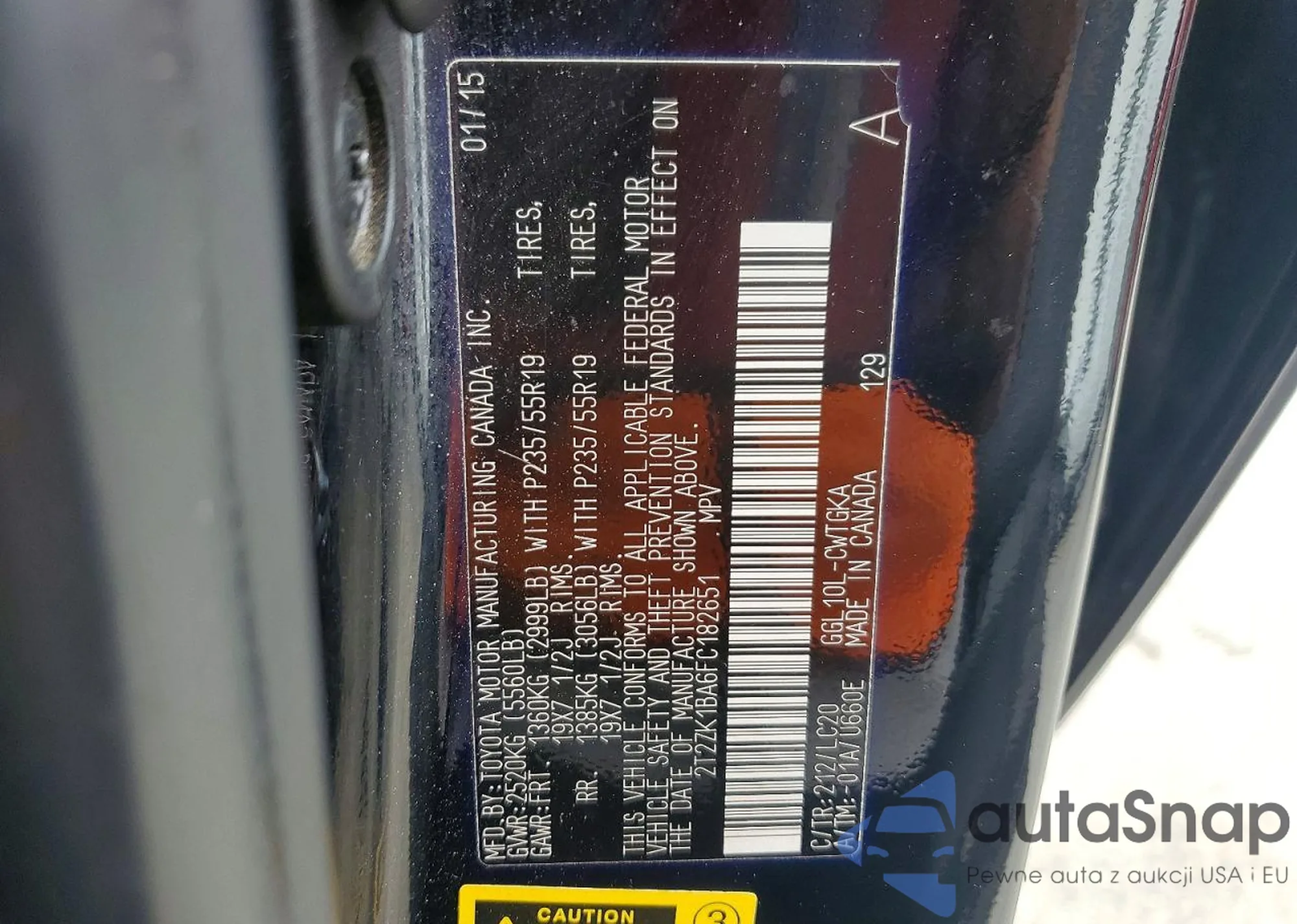 2T2ZK1BA6FC182651 COPART