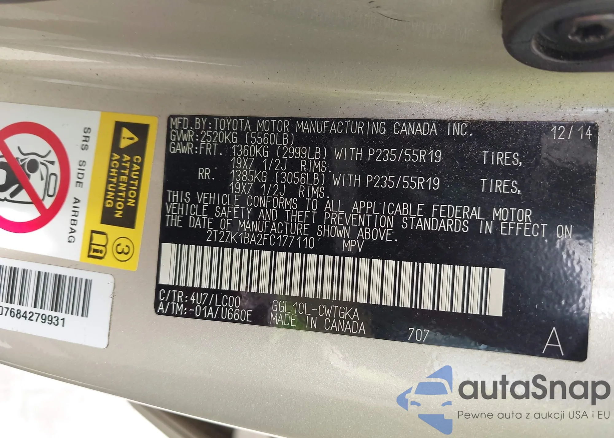 • VIN: 2T2ZK1BA2FC177110