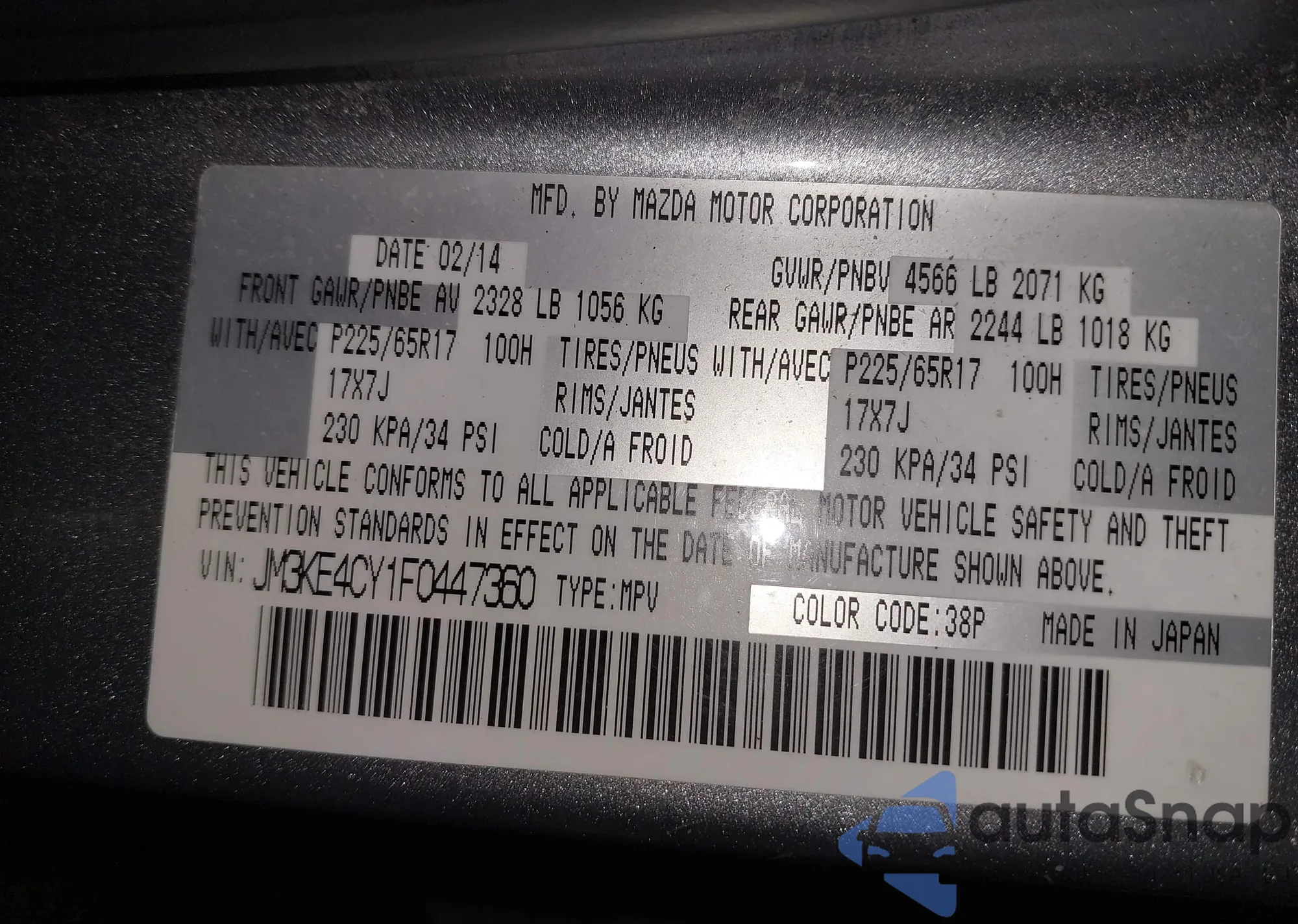 VIN: JM3KE4CY1F0447360