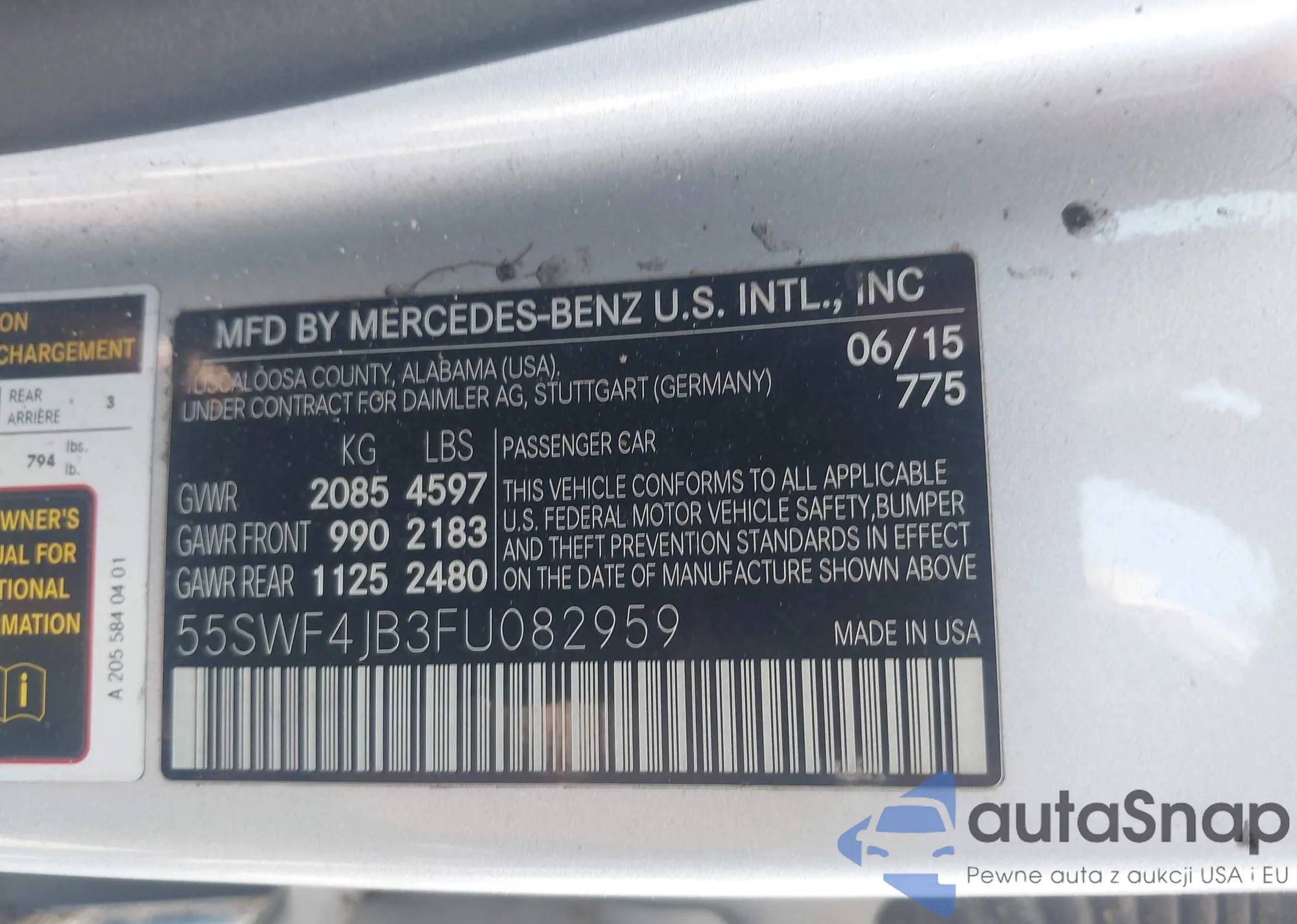 Samochód Mercedes-Benz C-klasse 2015 (VIN 55SWF4JB3FU082959) sprzedaje go niezweryfikowany sprzedawca. Zalecamy raport Carfax i potwierdzenie możliwości rejestracji pojazdu przed zakupem.