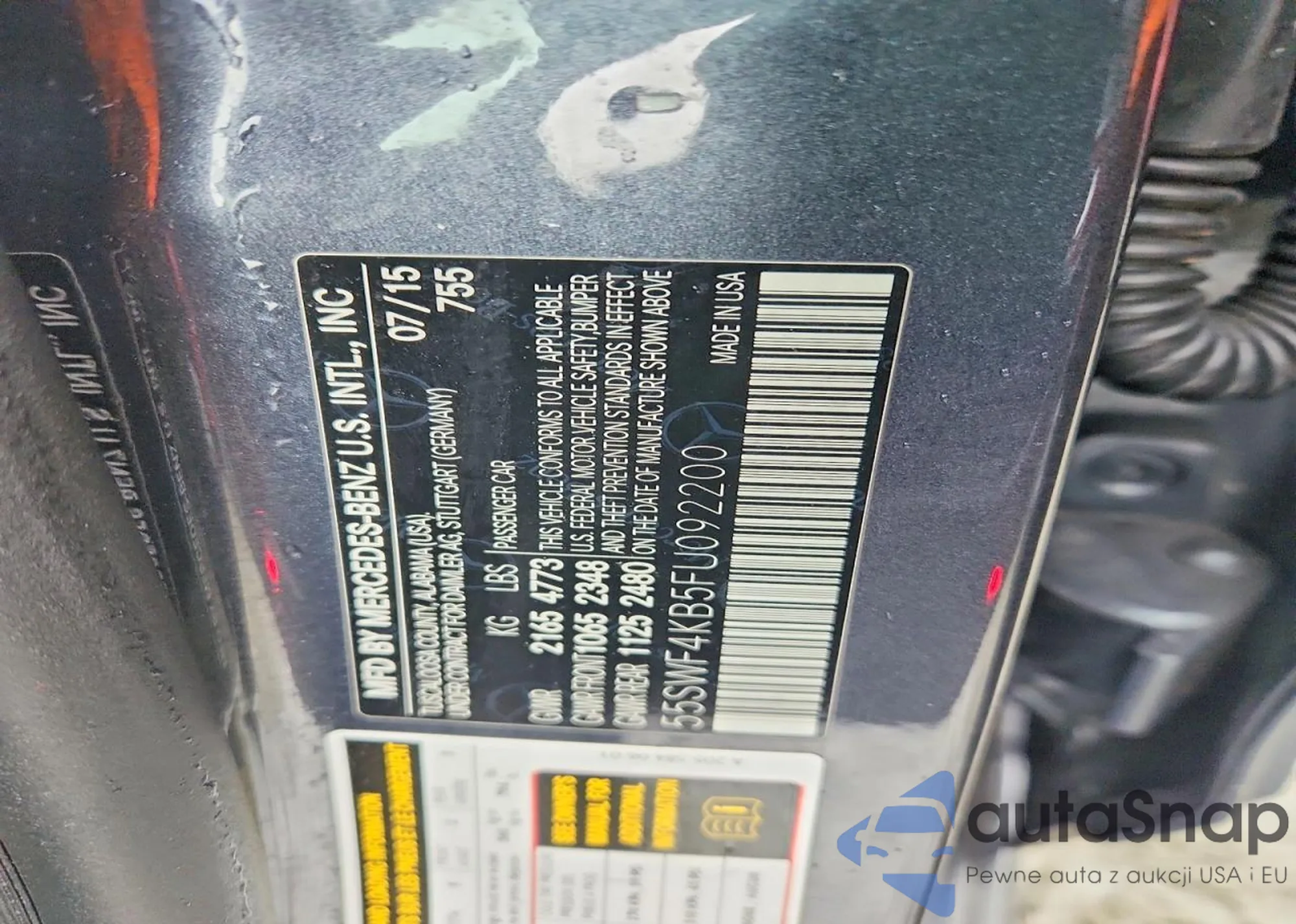 Samochód Mercedes-Benz C-klasse 2015 (VIN 55SWF4KB5FU092200) nie był wcześniej licytowany. Dokumenty są czyste, przebieg odpowiada lub jest niższy niż średnia rynku. Sprzedaje go firma ubezpieczeniowa – polecamy zakup. Dostawa do portu zajmie ok. 6–8 tygodni.