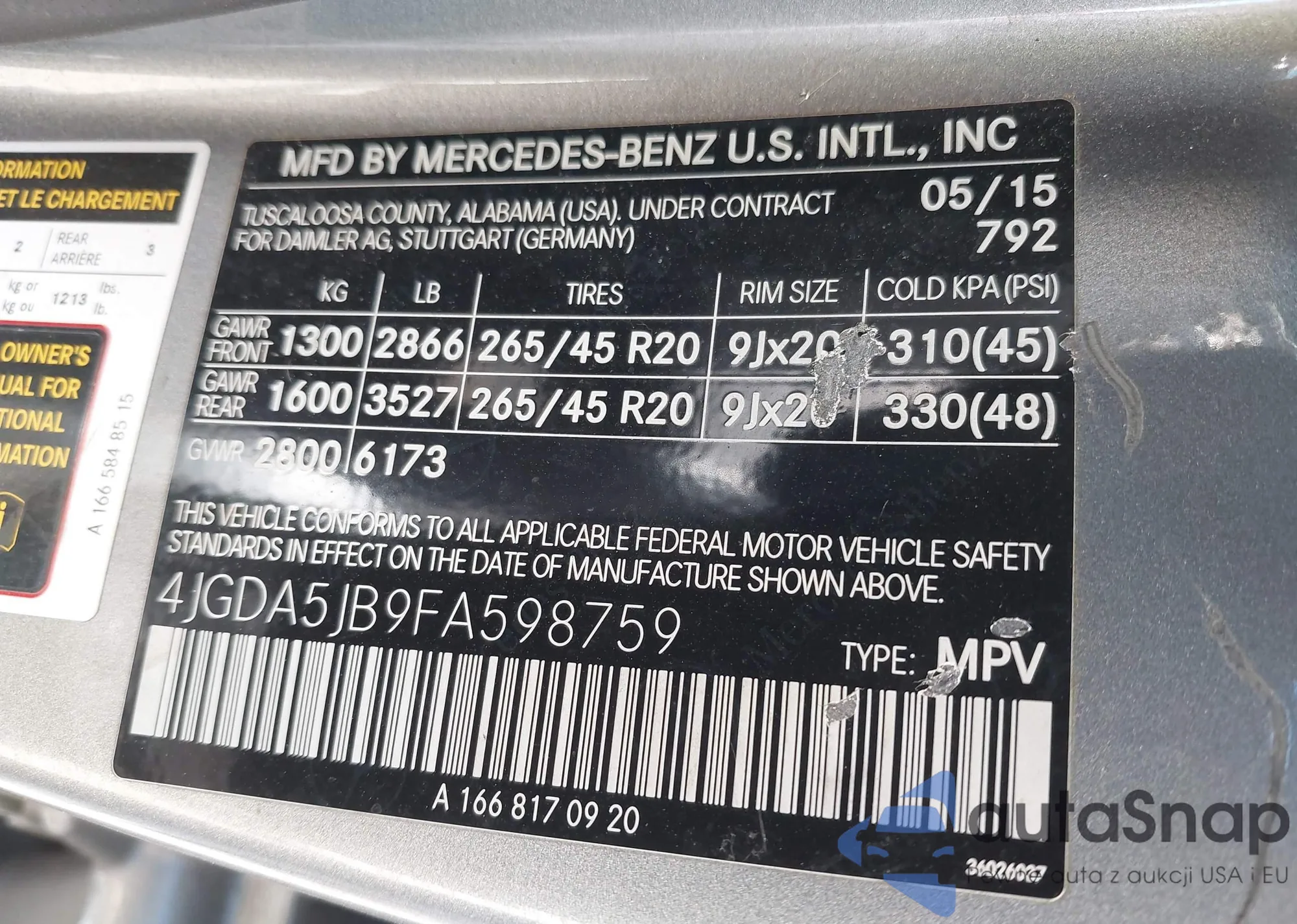 • VIN: 4JGDA5JB9FA598759