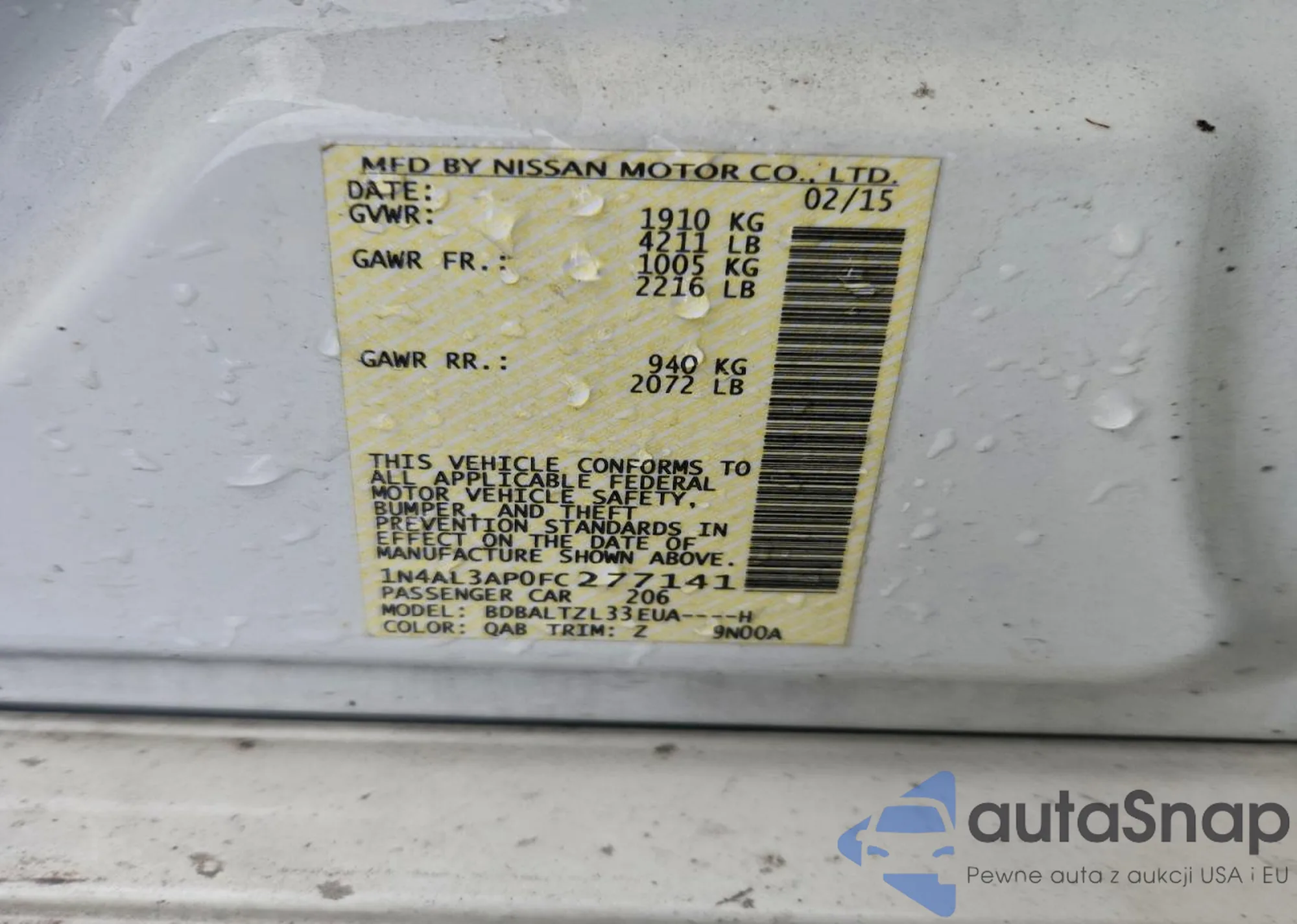 Nissan Altima 2015 – Historia pojazdu (sprzedany na COPART)