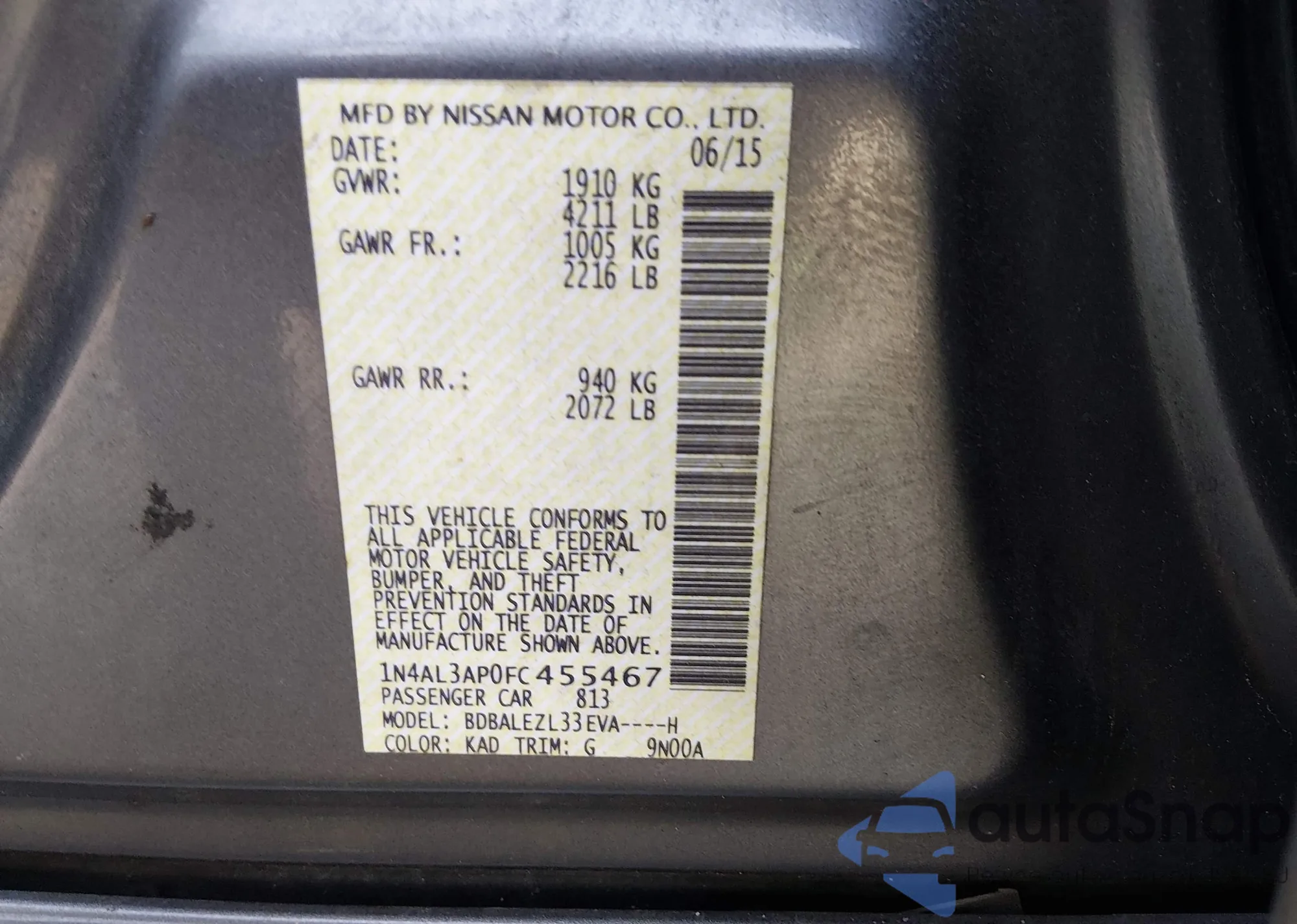 VIN: 1N4AL3AP0FC455467