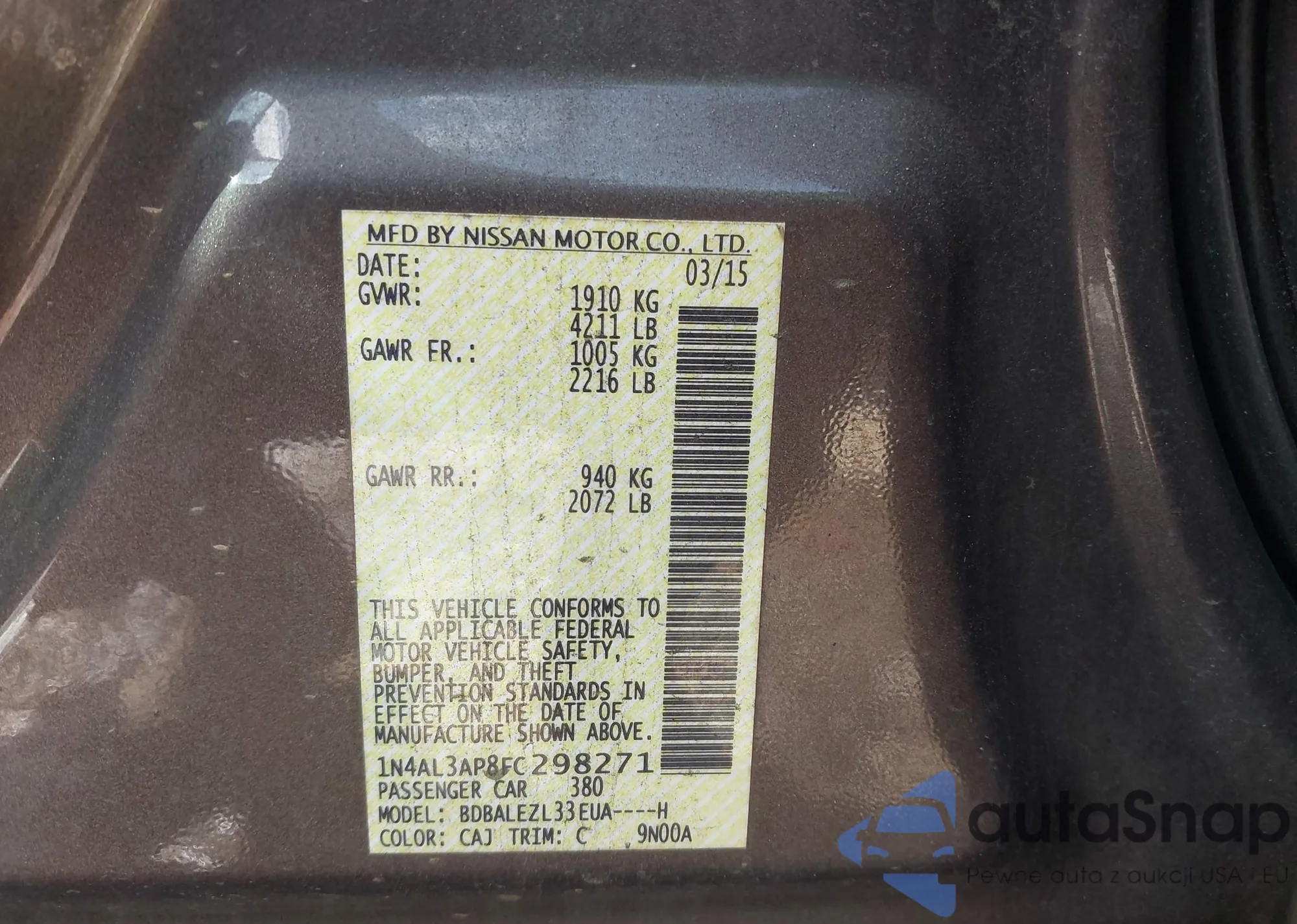 • VIN: 1N4AL3AP8FC298271