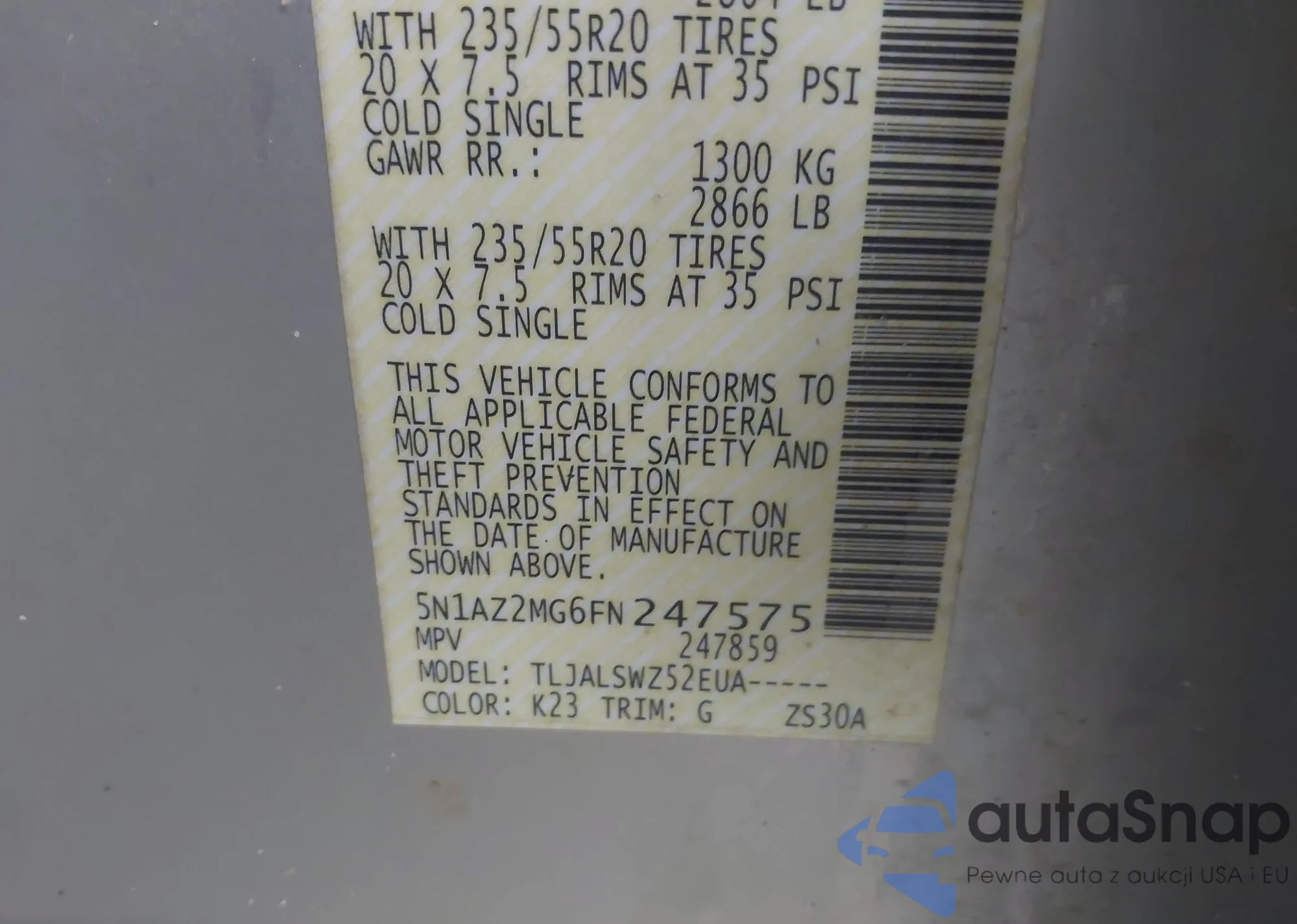 Samochód Nissan Murano 2015 (VIN 5N1AZ2MG6FN247575) nie był wcześniej licytowany. Dokumenty są czyste, przebieg odpowiada lub jest niższy niż średnia rynku. Sprzedaje go firma ubezpieczeniowa – polecamy zakup. Dostawa do portu zajmie ok. 6–8 tygodni.
