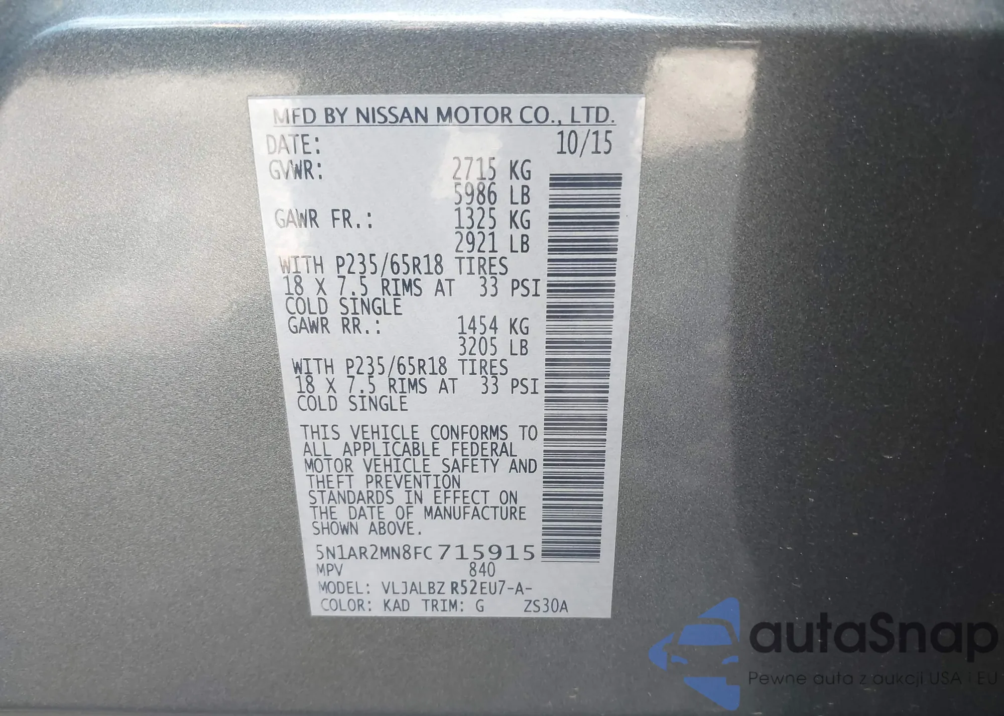• VIN: 5N1AR2MN8FC715915