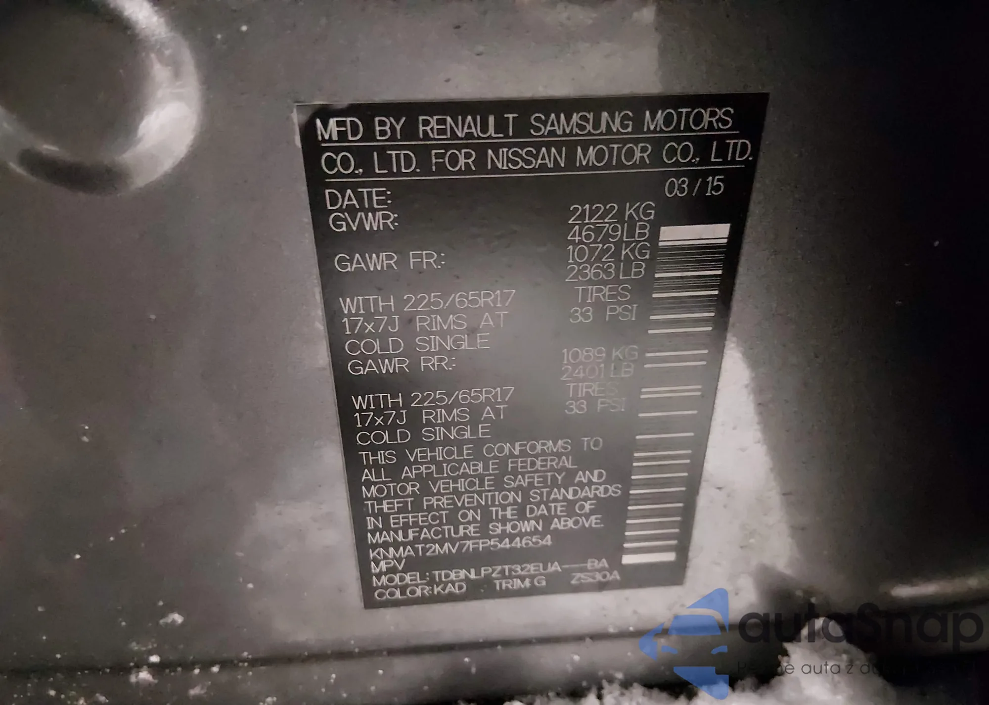 Samochód Nissan Rogue 2015 (VIN KNMAT2MV7FP544654) nie był wcześniej licytowany. Dokumenty są czyste, przebieg odpowiada lub jest niższy niż średnia rynku. Sprzedaje go firma ubezpieczeniowa – polecamy zakup. Dostawa do portu zajmie ok. 6–8 tygodni.