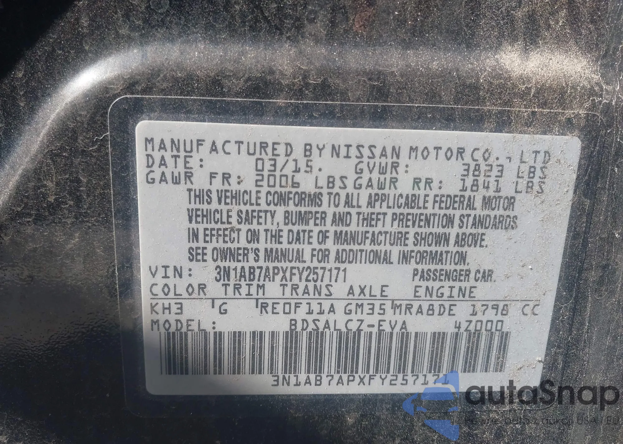 • VIN: 3N1AB7APXFY257171