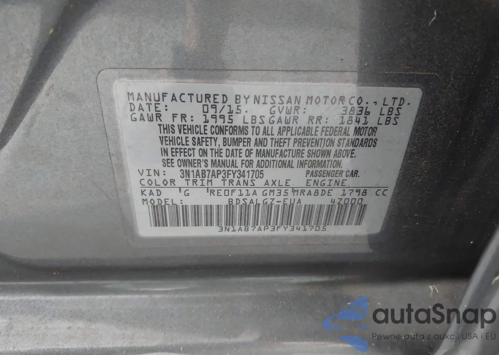 VIN: 3N1AB7AP3FY341705